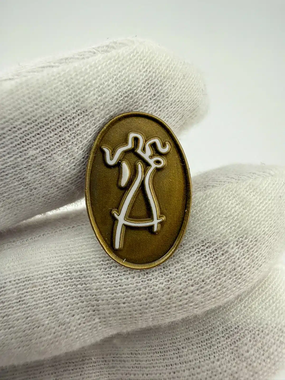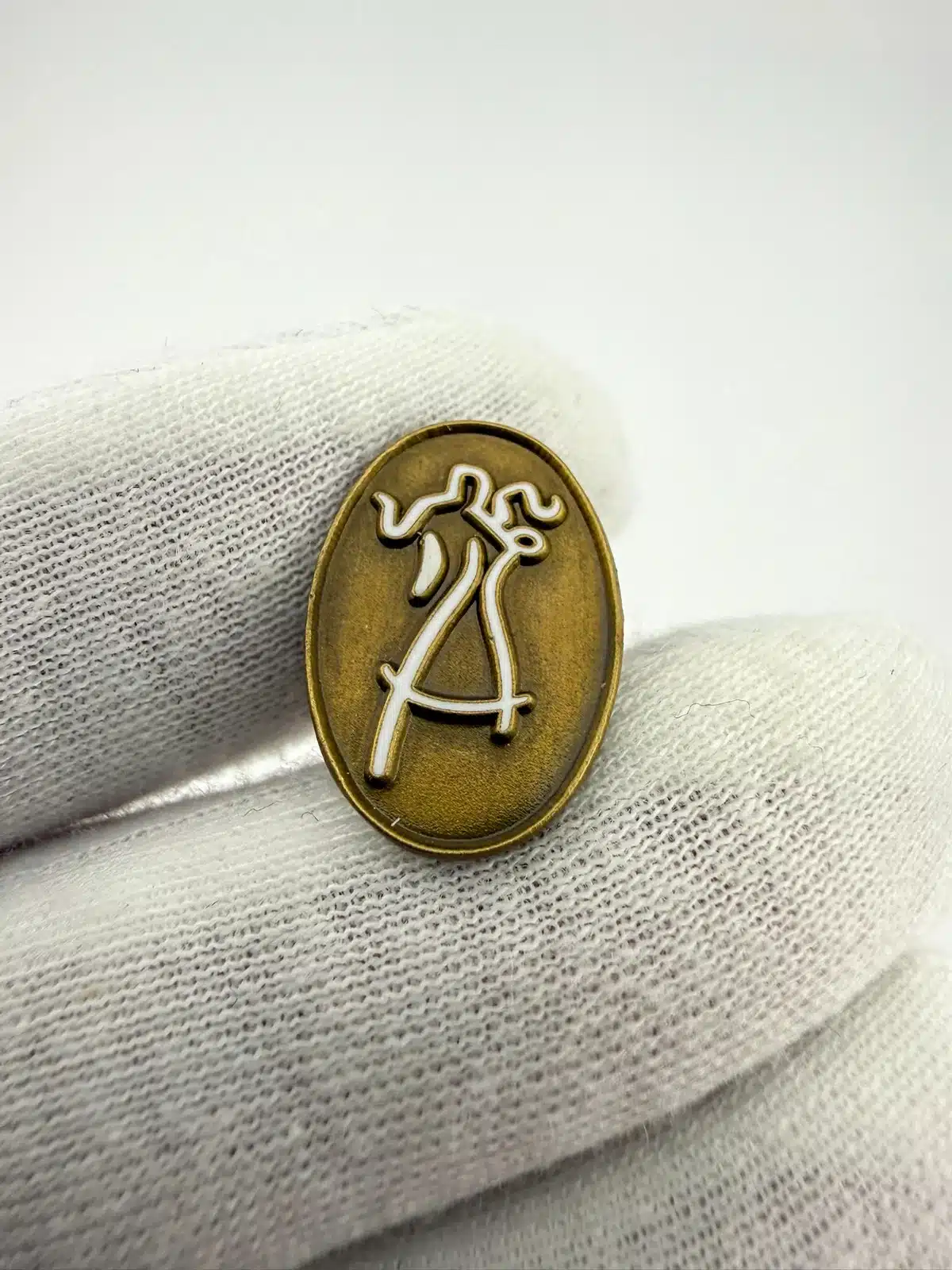 This oval-shaped tie tack pin features a striking design of a couple dancing, highlighted by a raised white outline against a gold tone background. The imagery captures the elegance and joy of dance, making it a timeless piece that celebrates this beloved art form.