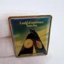 Measuring just over 1 inch in width and approximately 1.5 inches in height, this larger format pin has a noticeable presence and makes a strong addition to any airline or aviation memorabilia collection.
