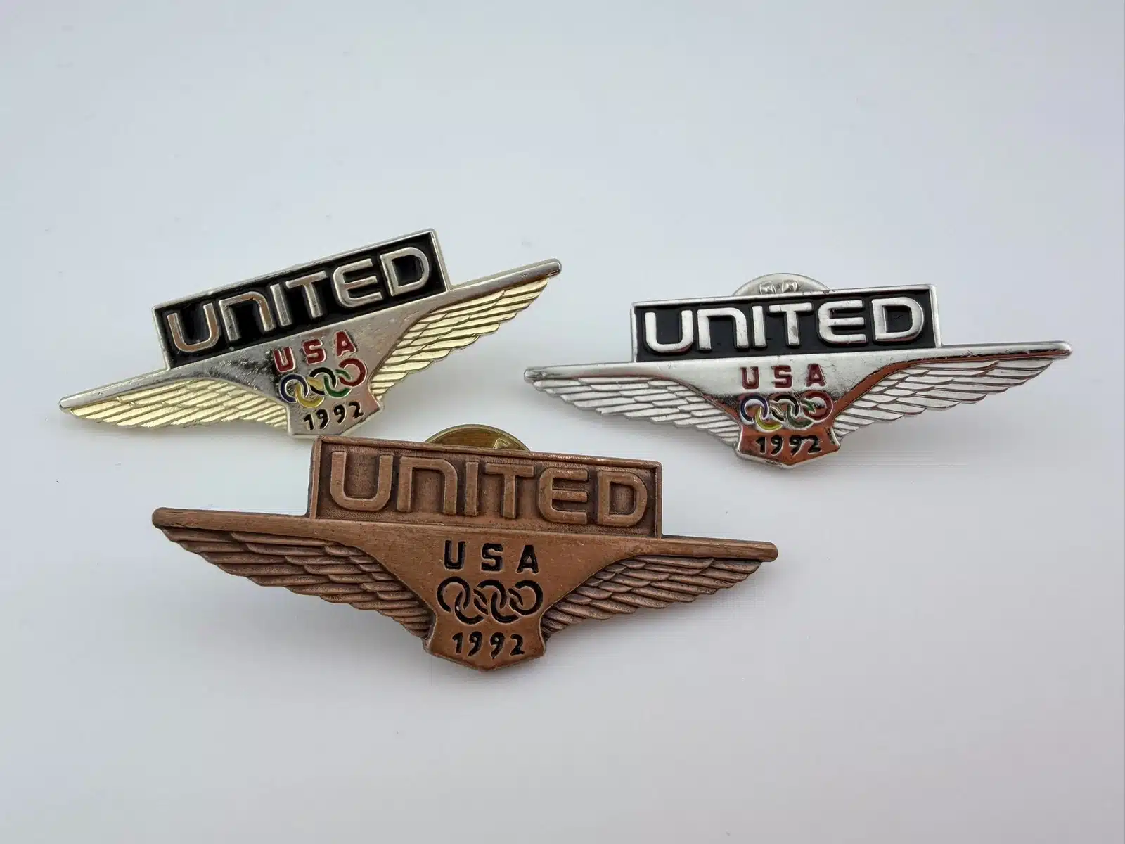 United Airlines 1992 Olympics Wings Pins – Bronze, Silver, and Gold Tone Pins