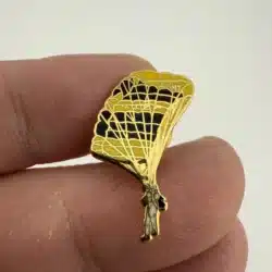 This tie tack pin features a detailed representation of an United States Army Parachutist, showcasing a gliding solider under a yellow and black parachute. The pin serves as a tribute to the airborne forces of the U.S. Army, symbolizing the skill and bravery of those who serve.