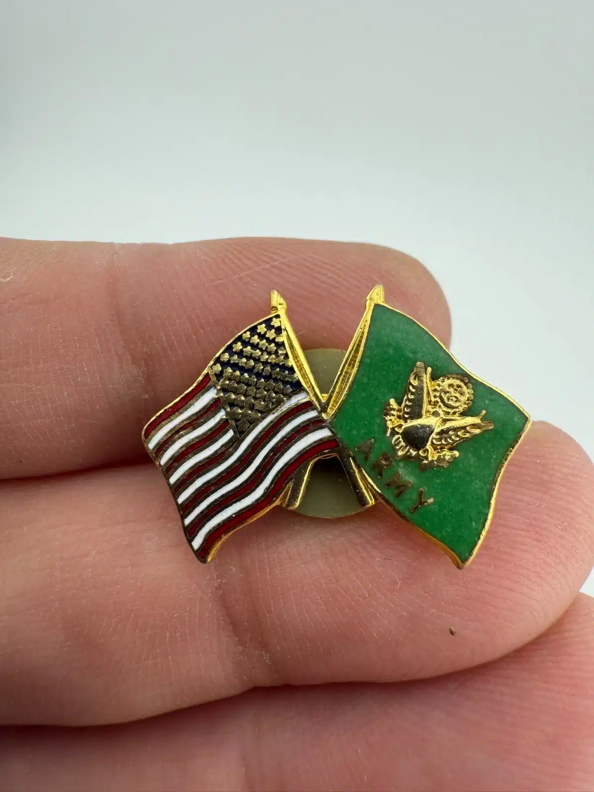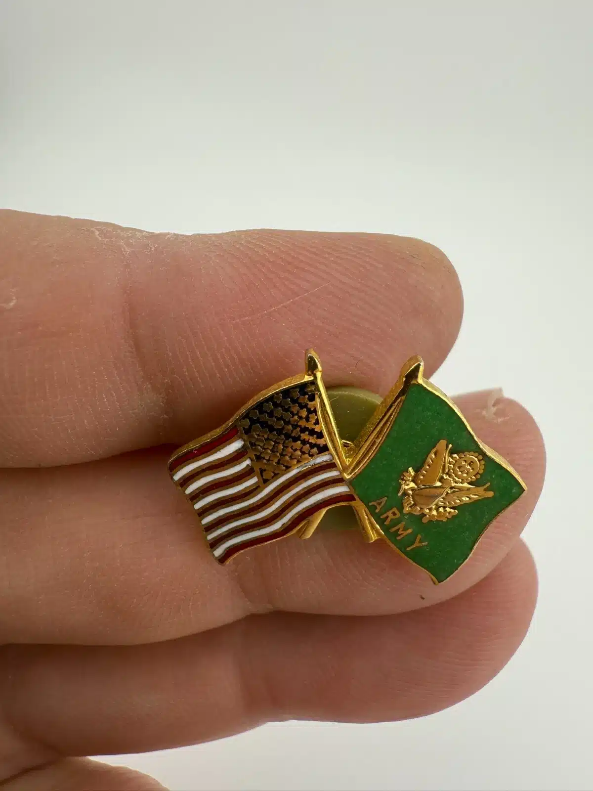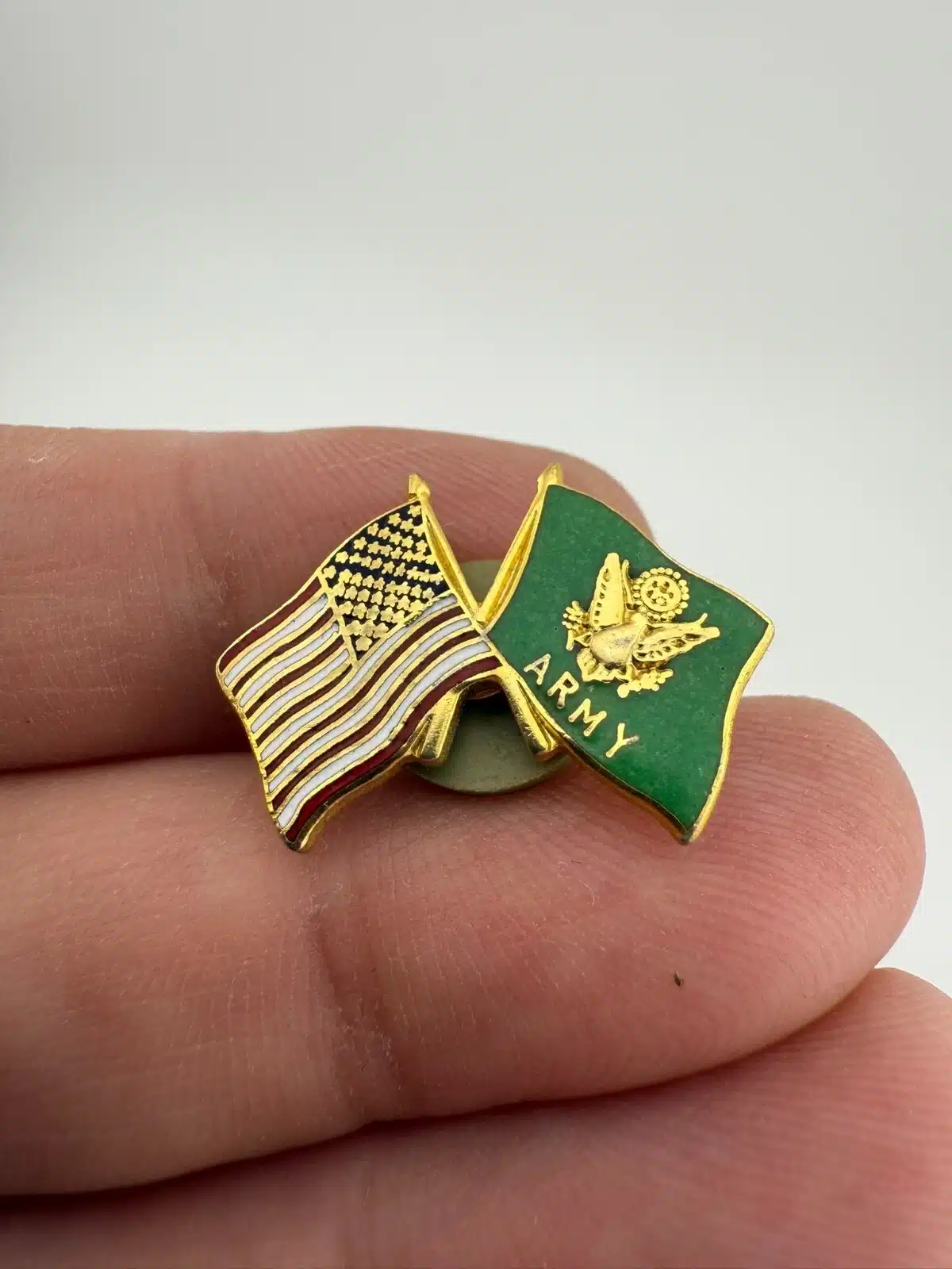 United States Flag crossed with Army Flag Lapel Hat Pin
