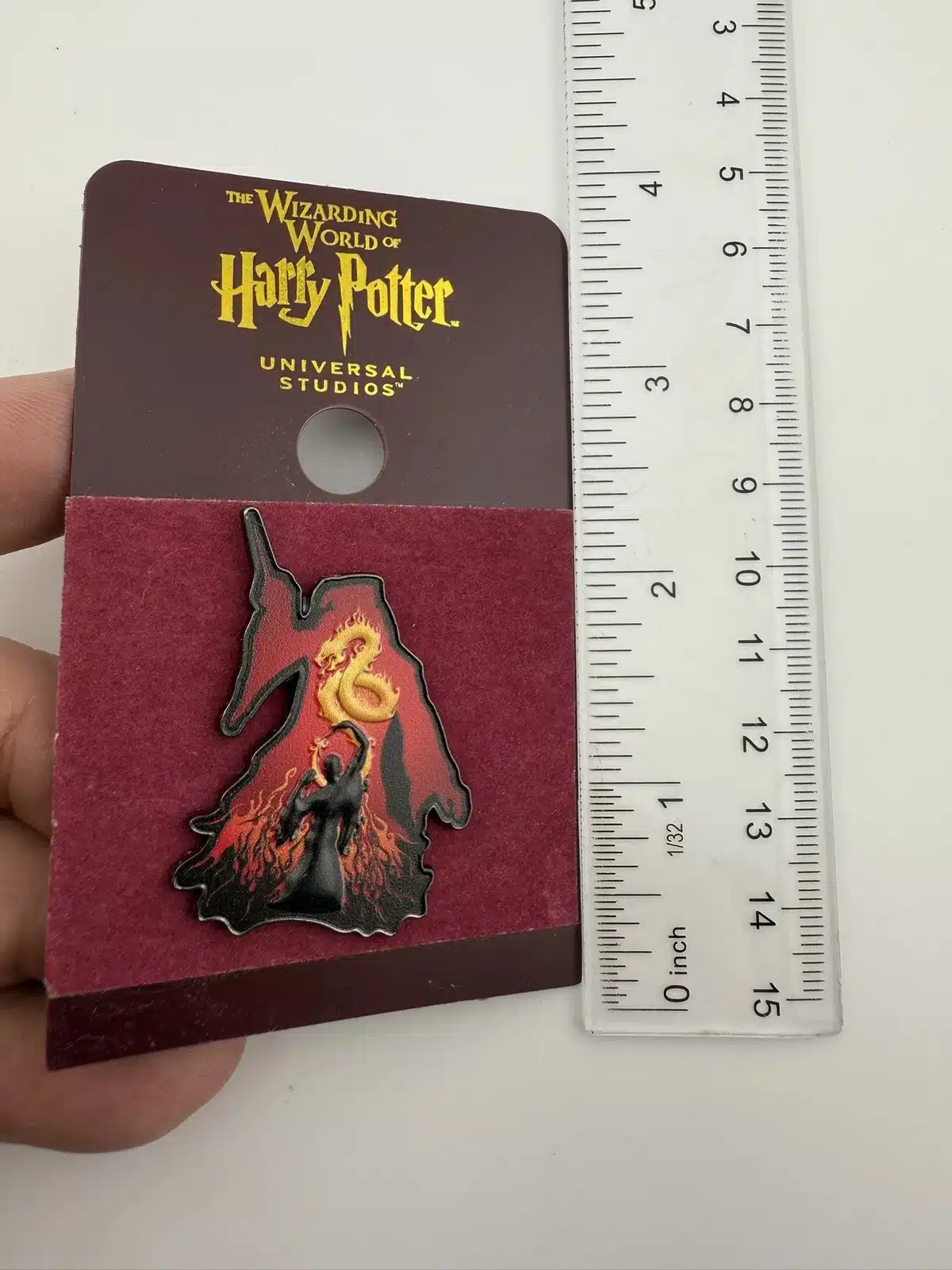This lapel pin features the iconic silhouettes of Dumbledore on the outside and Voldemort within, capturing the essence of their legendary rivalry from the Harry Potter series.