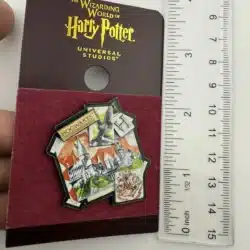 This lapel pin features a detailed depiction of Hogwarts Castle, the iconic school of witchcraft and wizardry from the Harry Potter series, showcasing its distinctive towers and turrets.