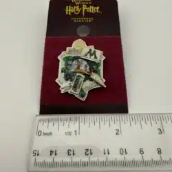 This lapel pin features various scenes and items from the Ministry of Magic as well as the M logo, a symbol of the wizarding world from the Harry Potter series.
