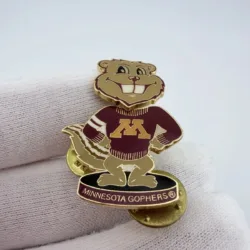 The University of Minnesota Golden Gophers represent the university’s athletic teams, with the mascot being a recognizable symbol of school spirit. Bobble style pins like this are novelty items that incorporate movement to add a playful element to traditional lapel pin designs.