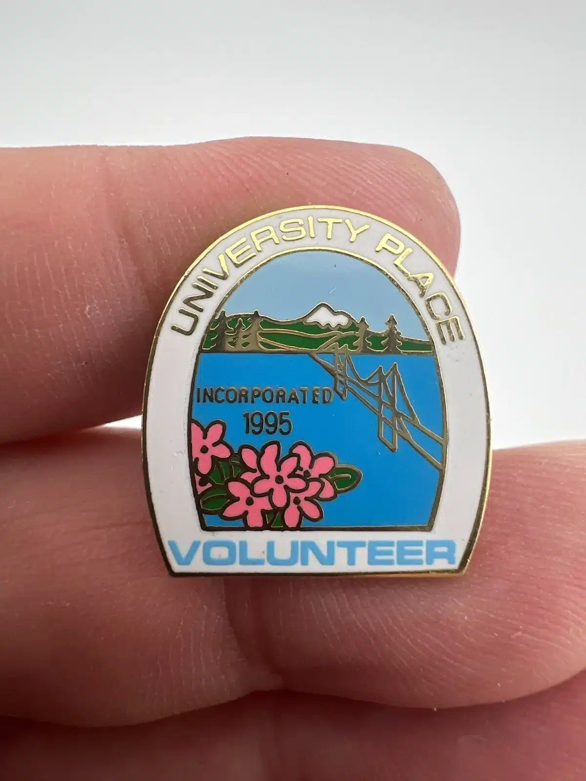 University Place Volunteer Pin – Featuring The Narrows and Mount Rainier