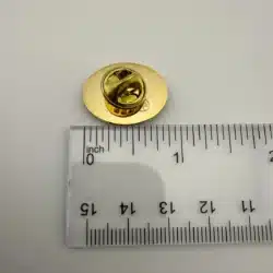This lapel hat pin features the number ’50’ at top with the word Allergan below. Possibly a 50th anniversary pin from Allergan Inc, a pharmaceutical company.