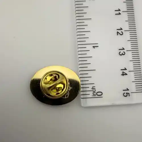 This lapel hat pin features the number ’50’ at top with the word Allergan below. Possibly a 50th anniversary pin from Allergan Inc, a pharmaceutical company.