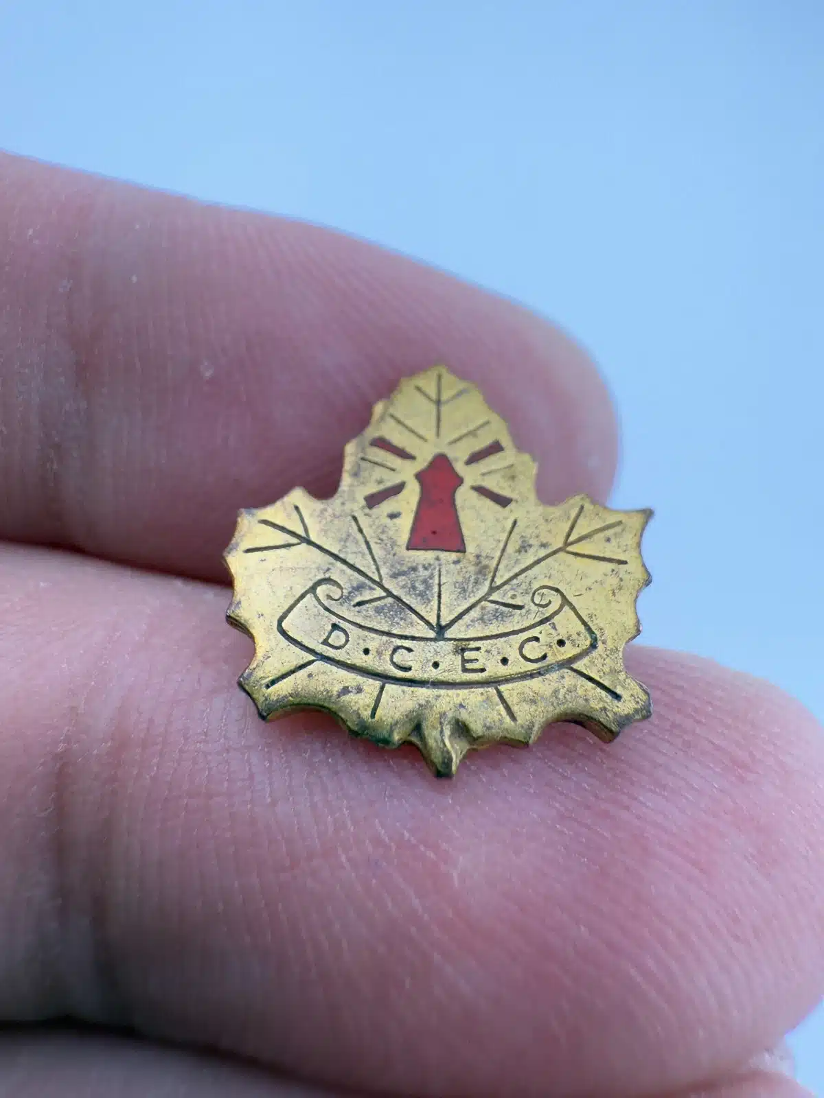 Unknown DCEC D.C.E.C. Banner On Maple Leaf Pin *read description*