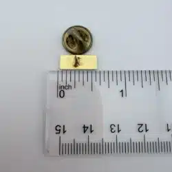 Measuring approximately 1/2 inch in width and about 1/4 inch in height, this is a small, low profile pin that sits neatly on a lapel, uniform, or hat. Its straightforward layout suggests it may have been worn by an employee or given away as an advertising piece.