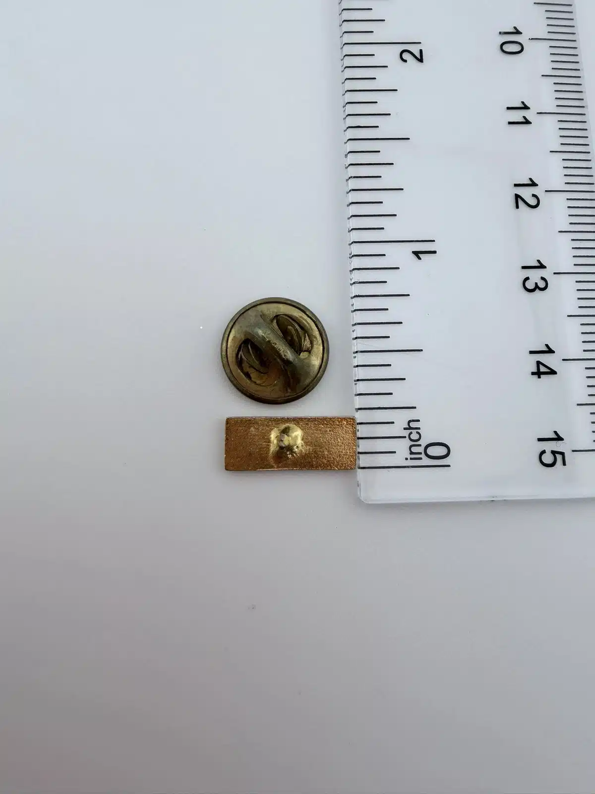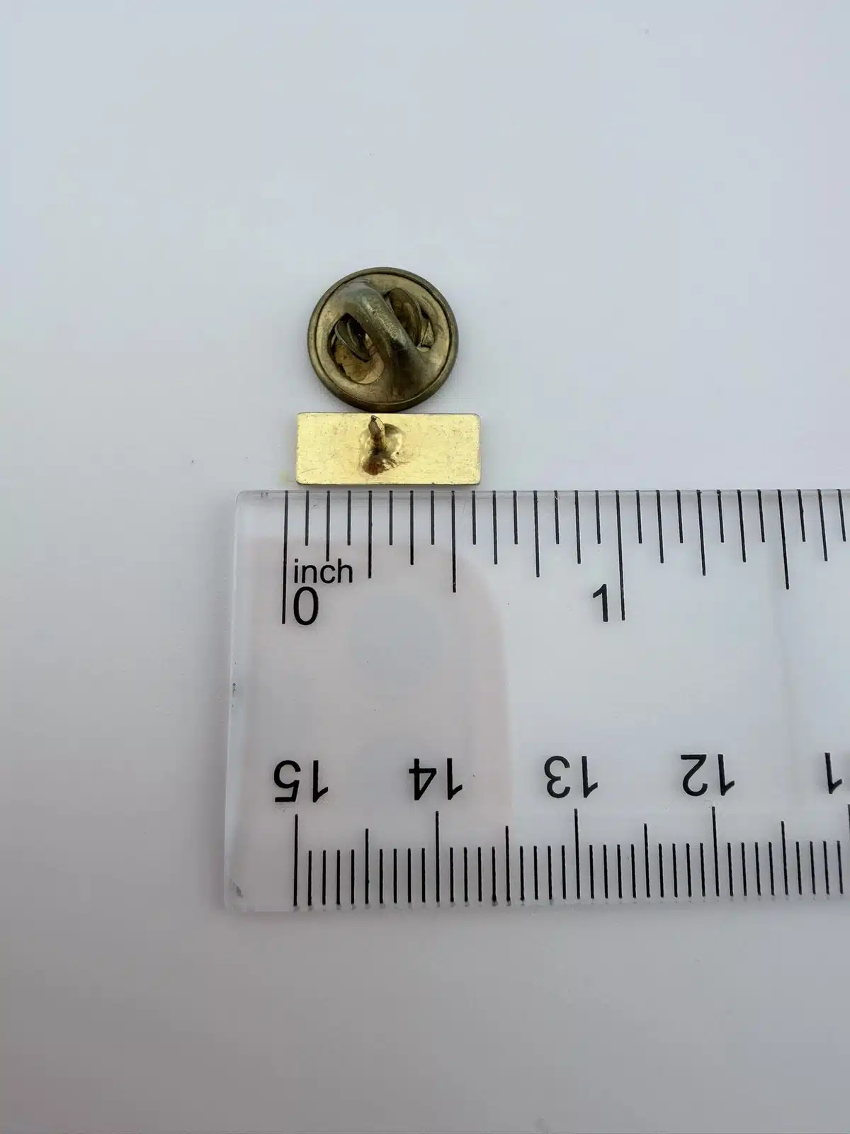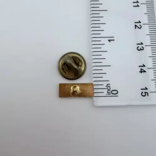 Measuring approximately 1/2 inch in width and about 1/4 inch in height, this is a small, low profile pin that sits neatly on a lapel, uniform, or hat. Its straightforward layout suggests it may have been worn by an employee or given away as an advertising piece.