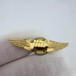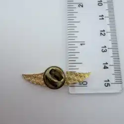 This gold tone aviation style wings pin features a classic horizontal wing design with the letters ‘PGI’ displayed prominently at the center. The layout mirrors traditional pilot and airline insignia, with symmetrical wings extending outward from a central emblem.