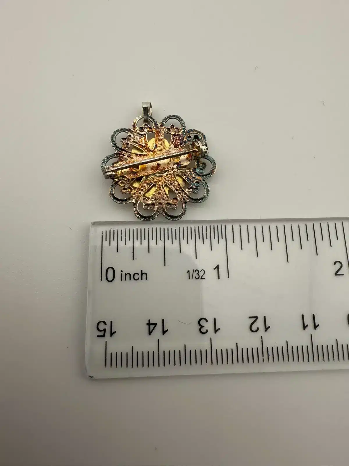 Used with marks / aging / discoloration / corrosion. Has a small clasp at the top as well. Please see all photos for exact condition of item and size.
