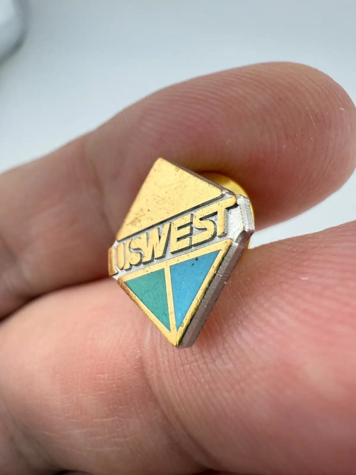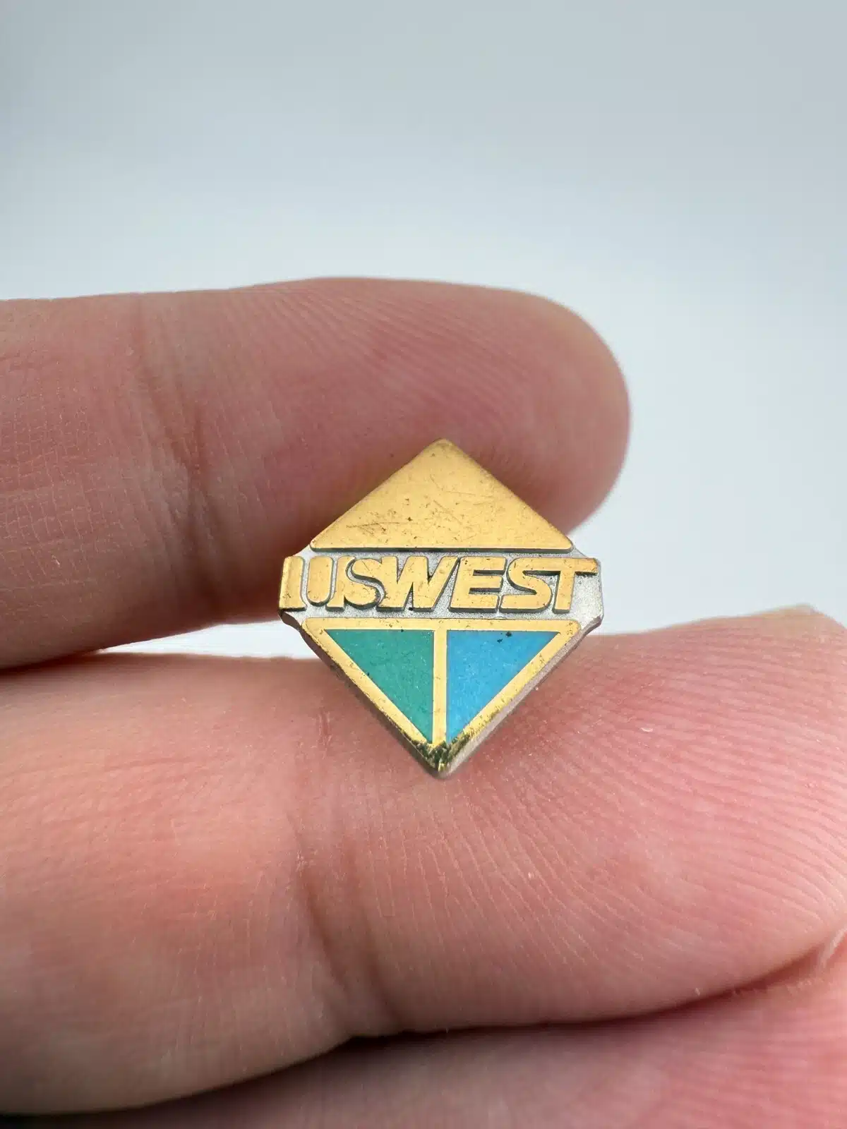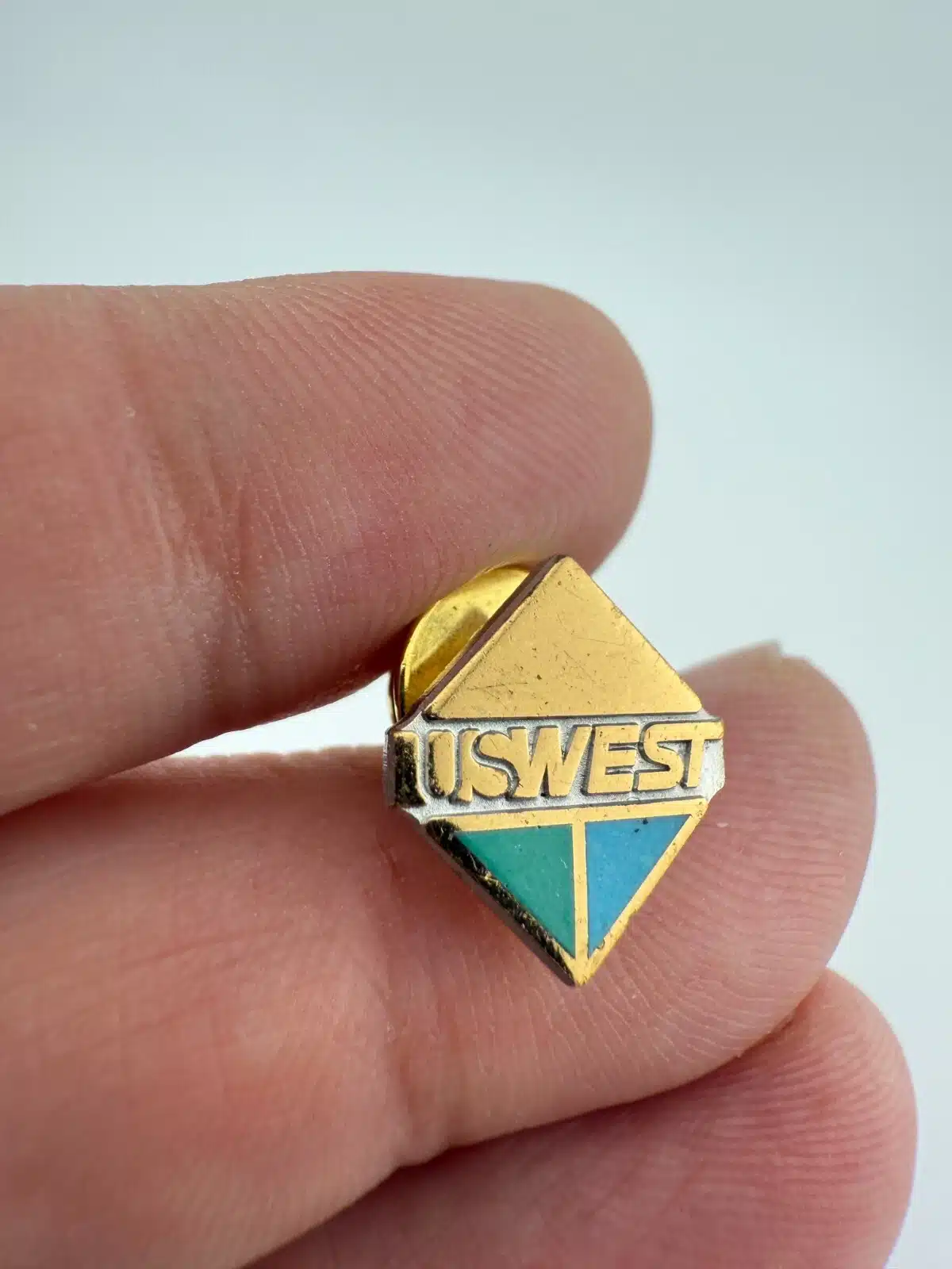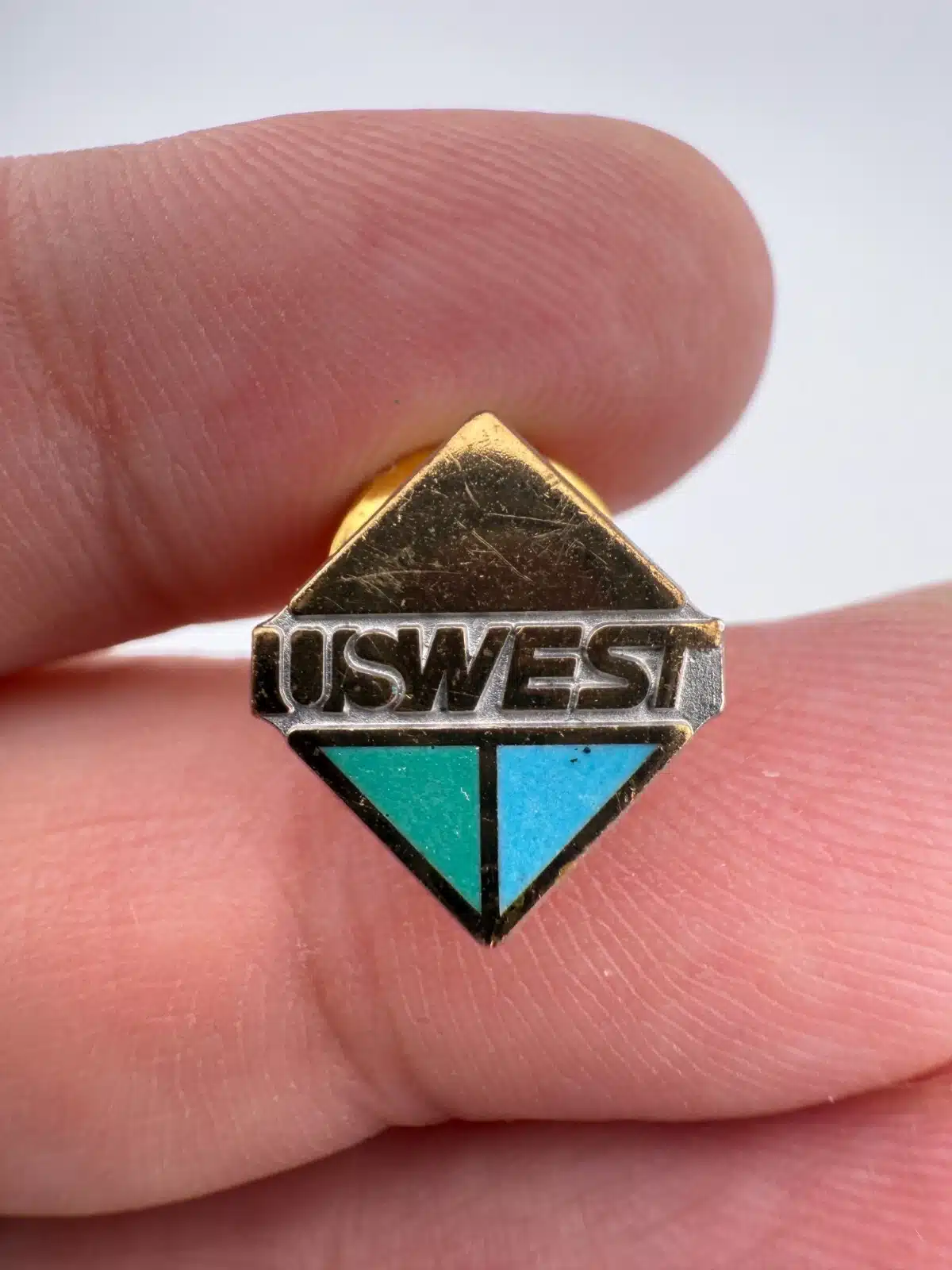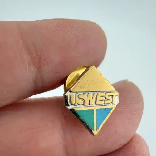 US West Telephone Gold Tone Metal & Enamel Lapel Pin – Scratches