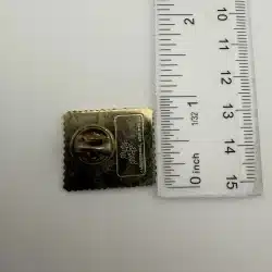 The USPS United States Postal Service U.S. Mail 8 Cents Stamp Pin features a vibrant design that replicates the iconic 8-cent stamp, showcasing the classic red, white, and blue U.S. Mail color scheme associated with American postal services.