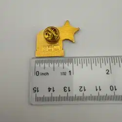 This pin is in used condition with marks including a manufacturing flaw that almost looks like a fiber under the enamel. It however is hard to see without taking a close-up photo. Please review all photos for exact condition and approximate size.