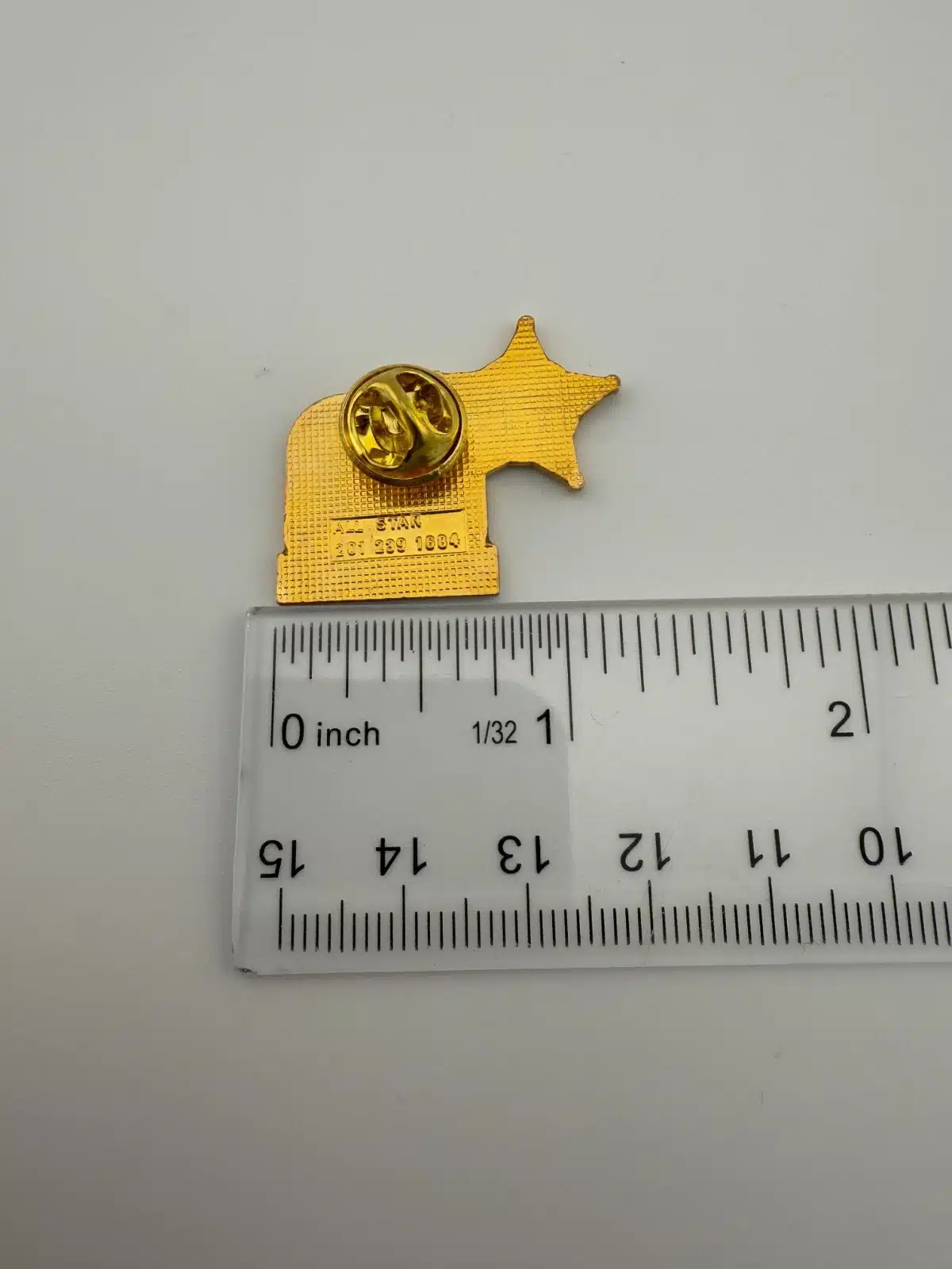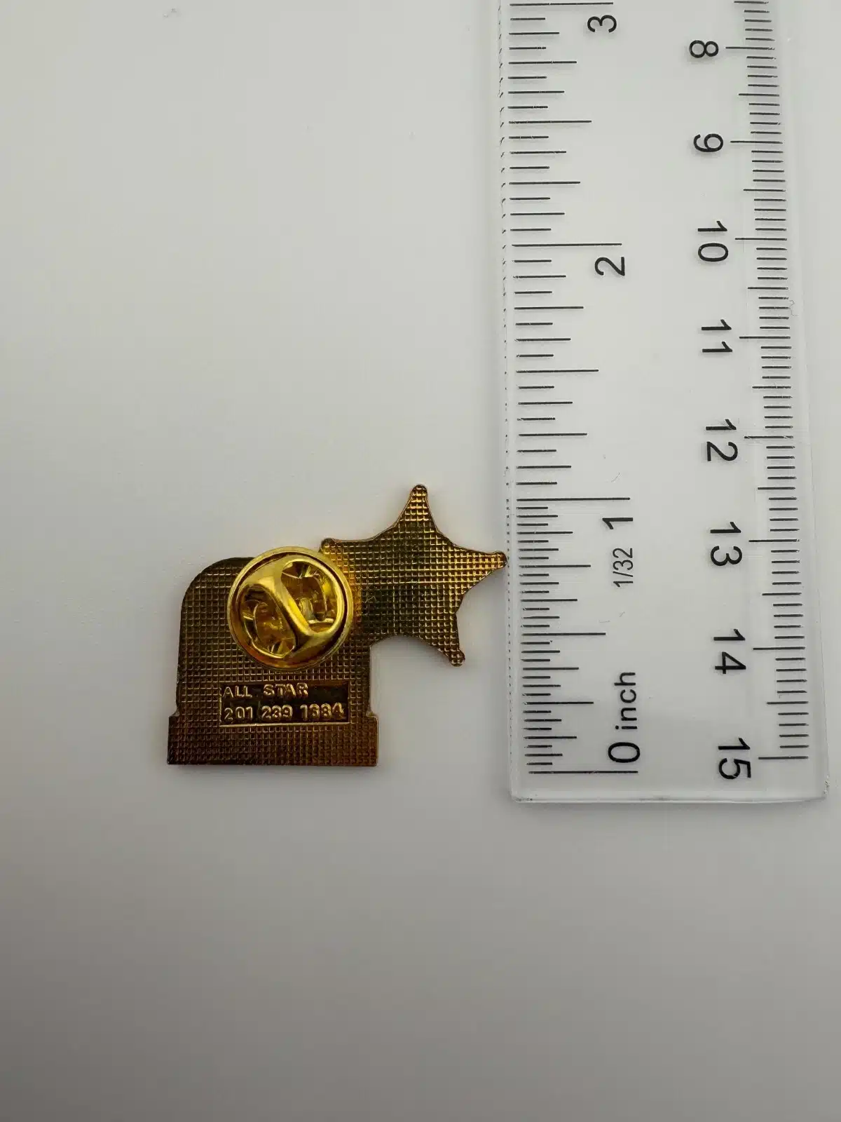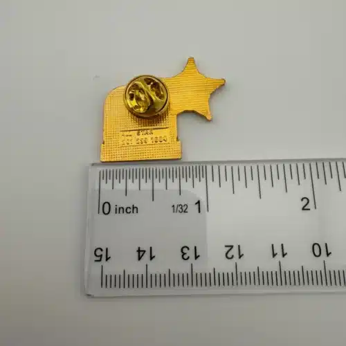 This pin is in used condition with marks including a manufacturing flaw that almost looks like a fiber under the enamel. It however is hard to see without taking a close-up photo. Please review all photos for exact condition and approximate size.