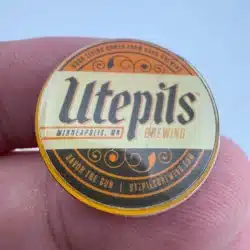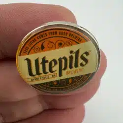 Utepils Brewing is a craft brewery based in Minneapolis, Minnesota known for traditional European-style lagers and its outdoor beer garden culture. Pin measures approximately 1 inch in width by 1 inch in height.