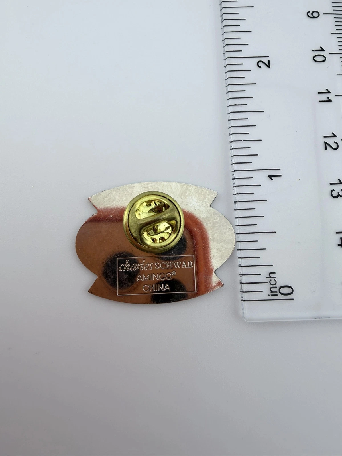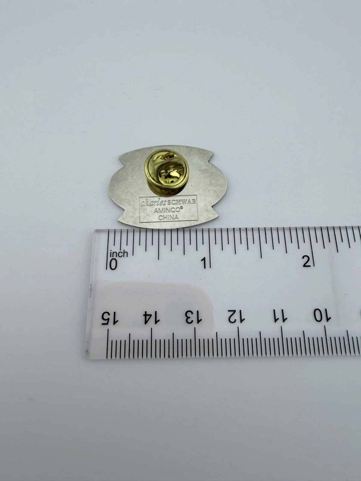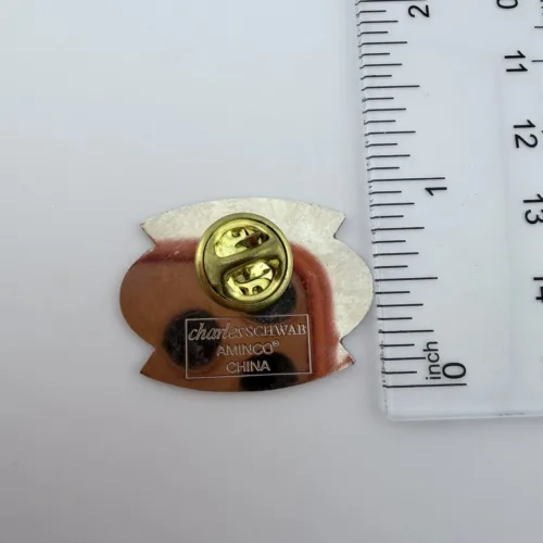 The pin measures approximately 1 inch in width by 3/4 inch in height.