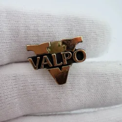 This pin features a bold gold tone letter “V” with the word “VALPO” running vertically across the center of the letter.