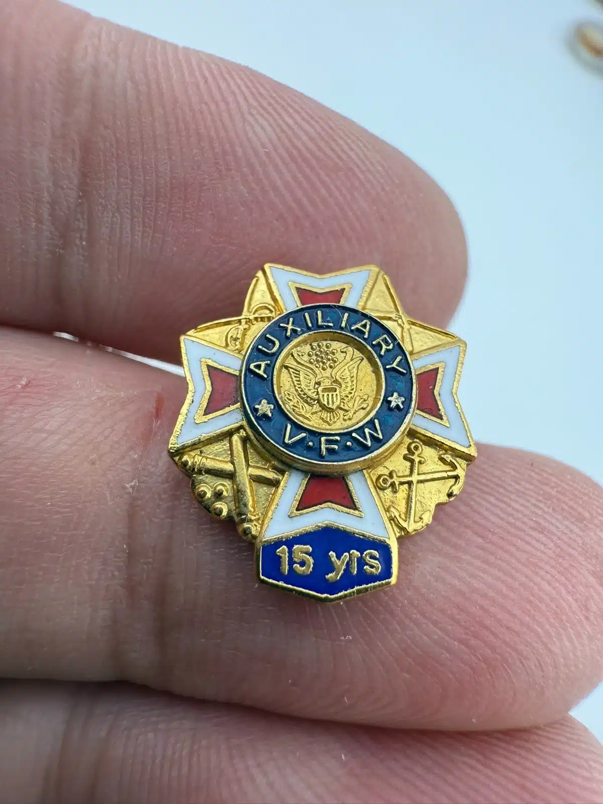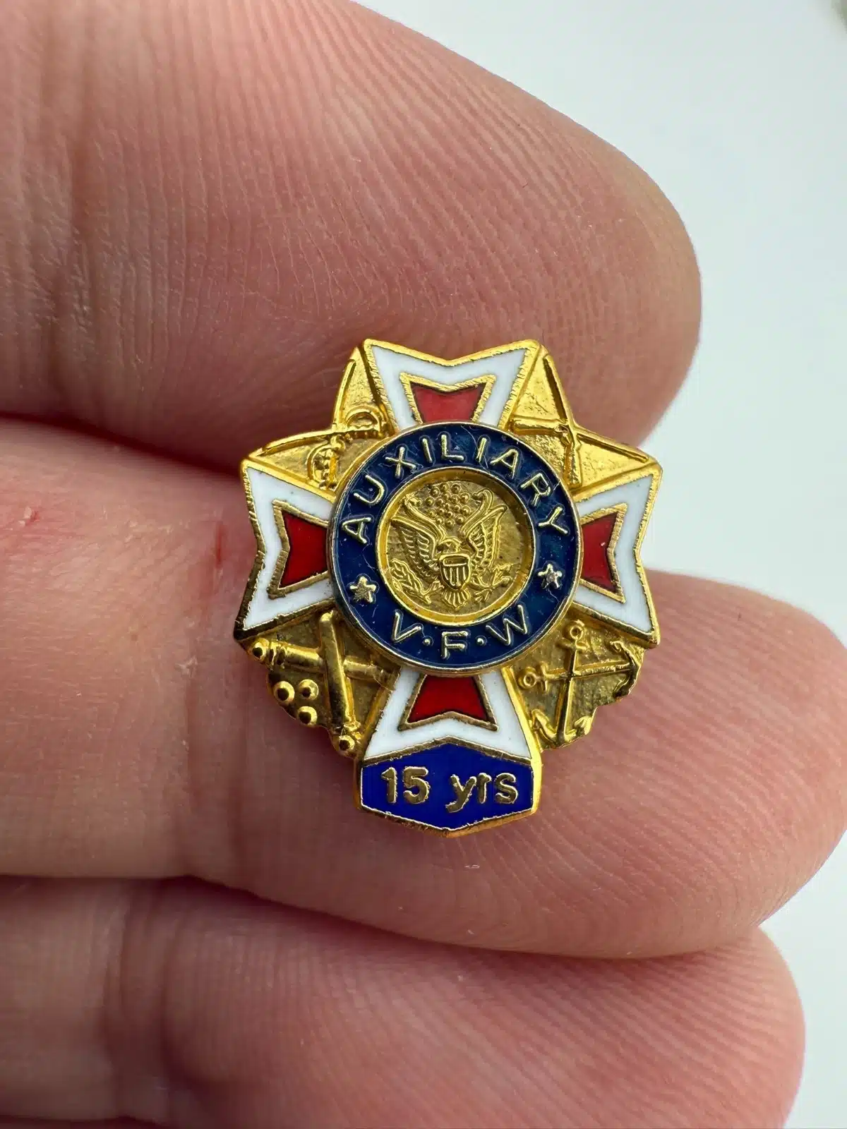 VFW Veterans Of Foreign Wars Ladies Auxiliary 15 Years Member Pin Brooch