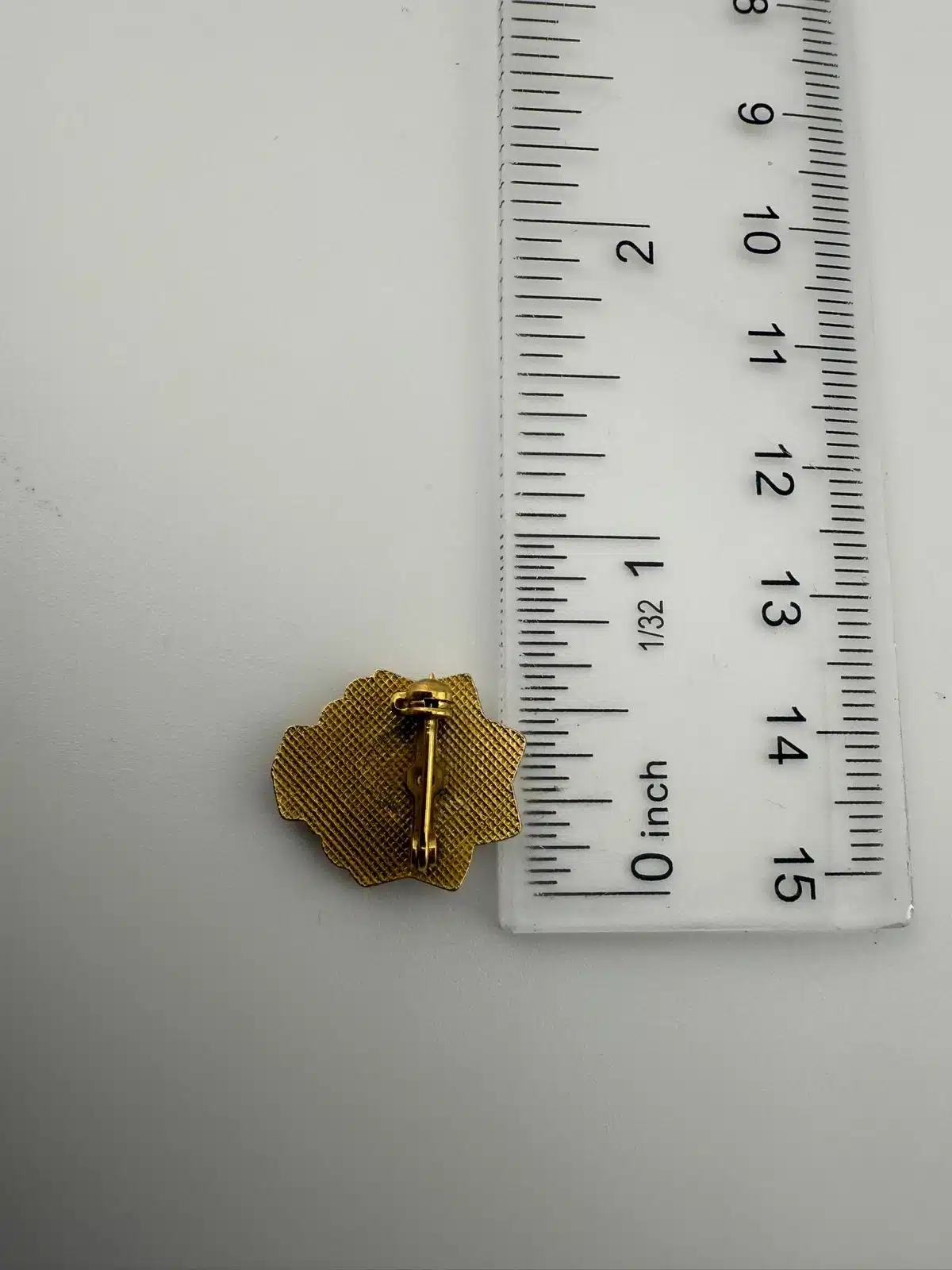The VFW Auxiliary supports veterans, service members, and their families through community programs and advocacy, with membership pins recognizing years of service and participation. Pin measures just over 1/2 inch in width by approximately 3/4 inch in height.