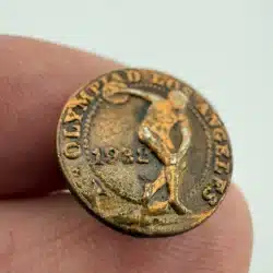 This incredibly rare vintage lapel pin features a detailed depiction of a discus thrower and is from the 1932 Xth Olympiad held in Los Angeles. The pin captures the spirit of the Olympic Games, celebrating athletic prowess and the iconic events of this historic sporting competition.