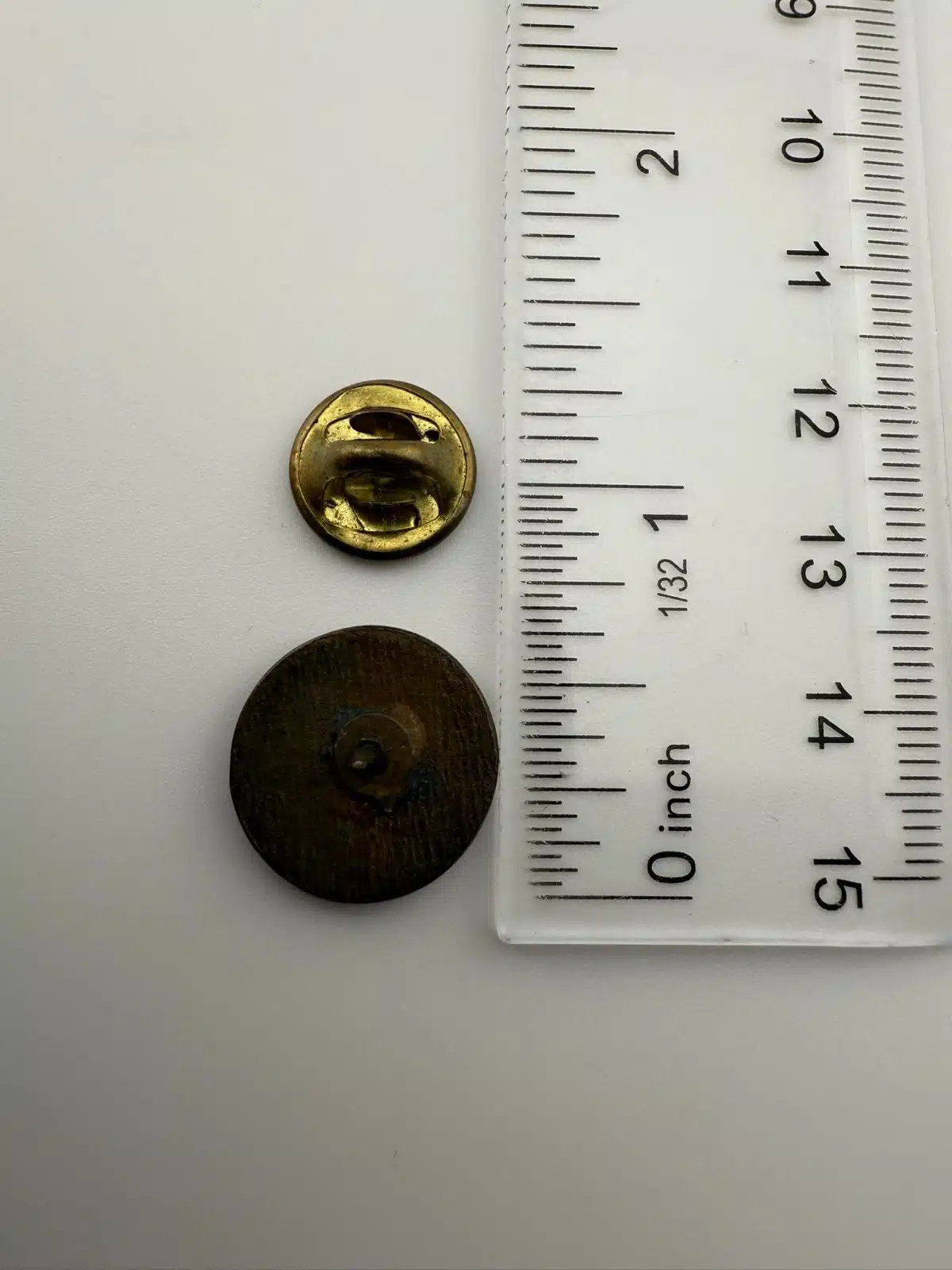Condition: Used with marks including wear, dings, original production flaws, and build up. Needle on rear is original, clasp is newer. Please review all photos for exact condition of item and size.