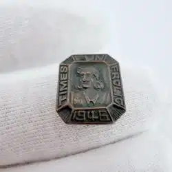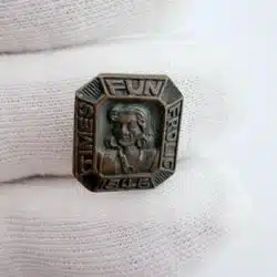 This vintage 1946 pin brooch features a whimsical design inspired by the Fun Frolic event hosted by the Seattle Times, showcasing playful imagery that reflects the spirit of post-war celebration. The piece serves as a charming reminder of the vibrant social culture of Seattle during the mid-20th century.