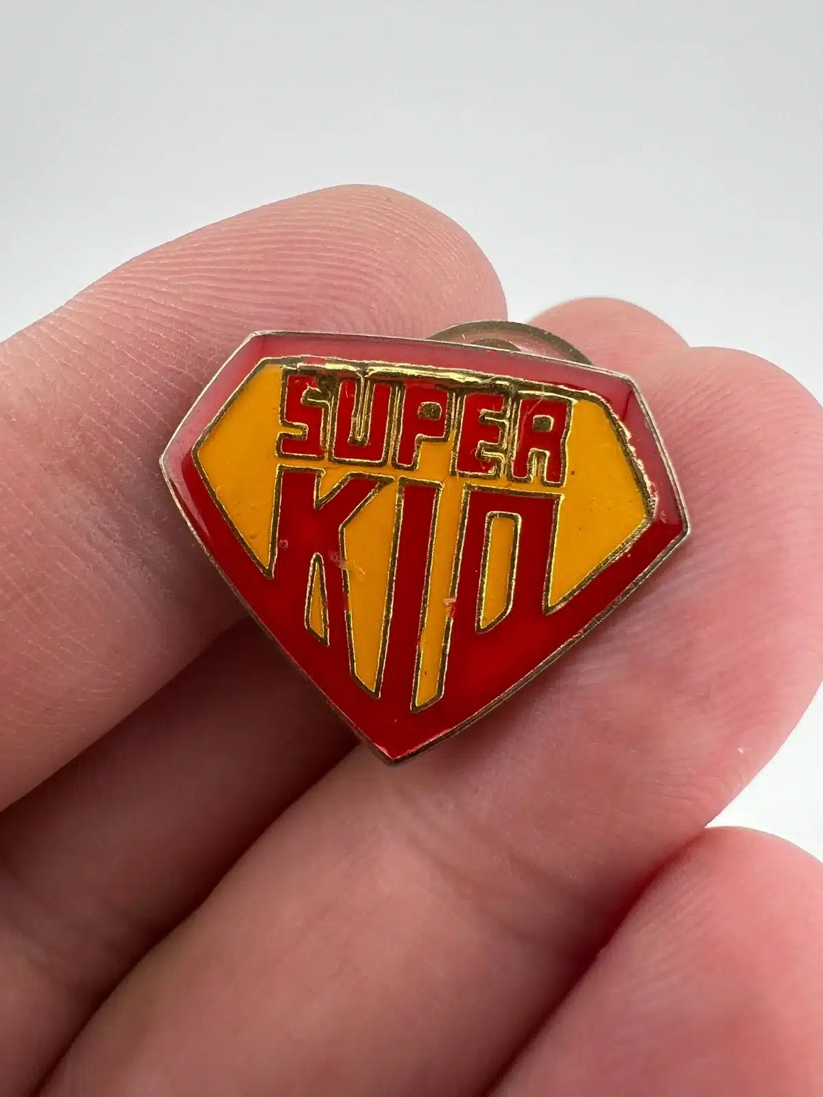 Vintage 1980s SUPER KID Enamel Lapel Hat Pin