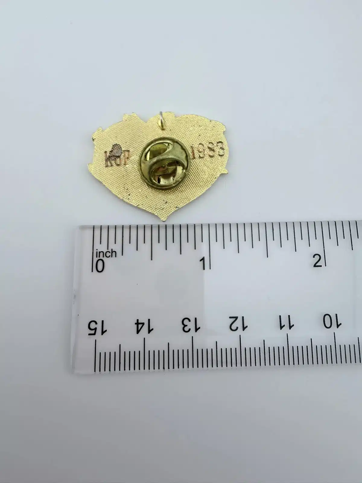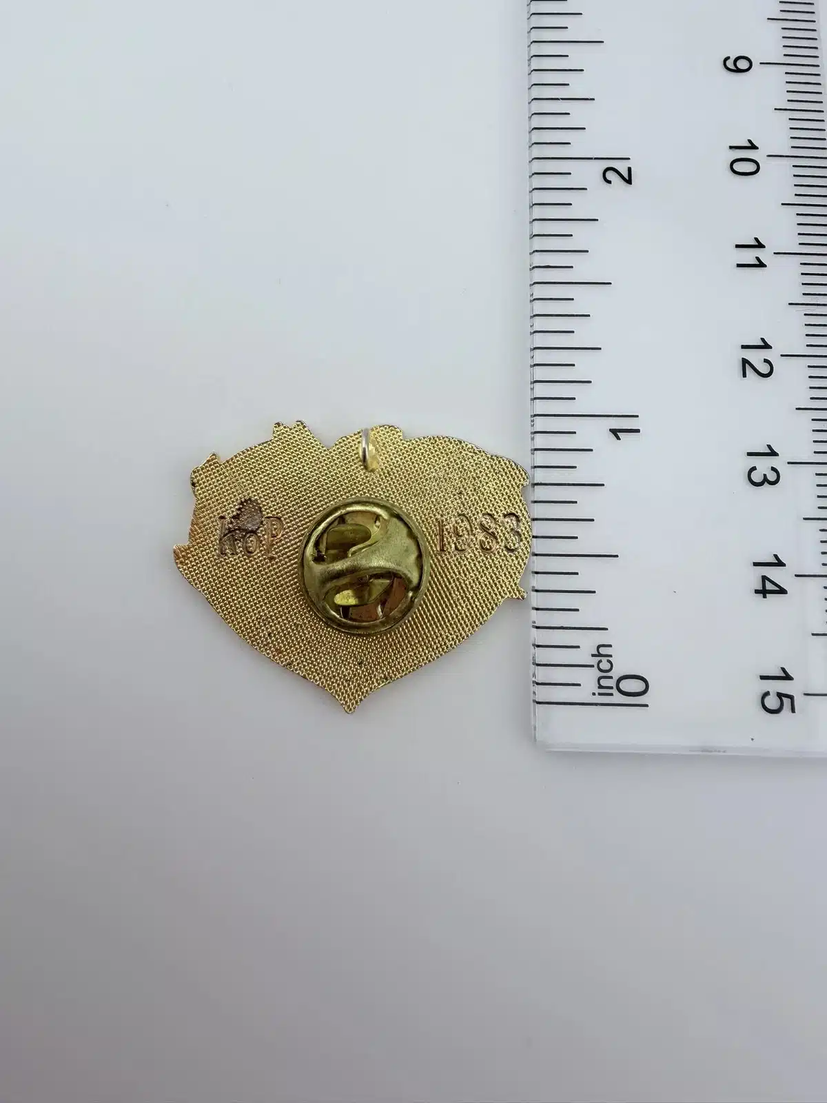 This vintage 1983 Krewe of Proteus Mardi Gras favor pin features vibrant colors and intricate designs that reflect the festive spirit of New Orleans’ Mardi Gras celebration. The pin showcases the Krewe’s iconic imagery, celebrating its long-standing tradition since its founding in 1882. Within the pin you will discover a cherub angel shooting an arrow, a fish on each side, as well as a seahorse in the center behind the angel.