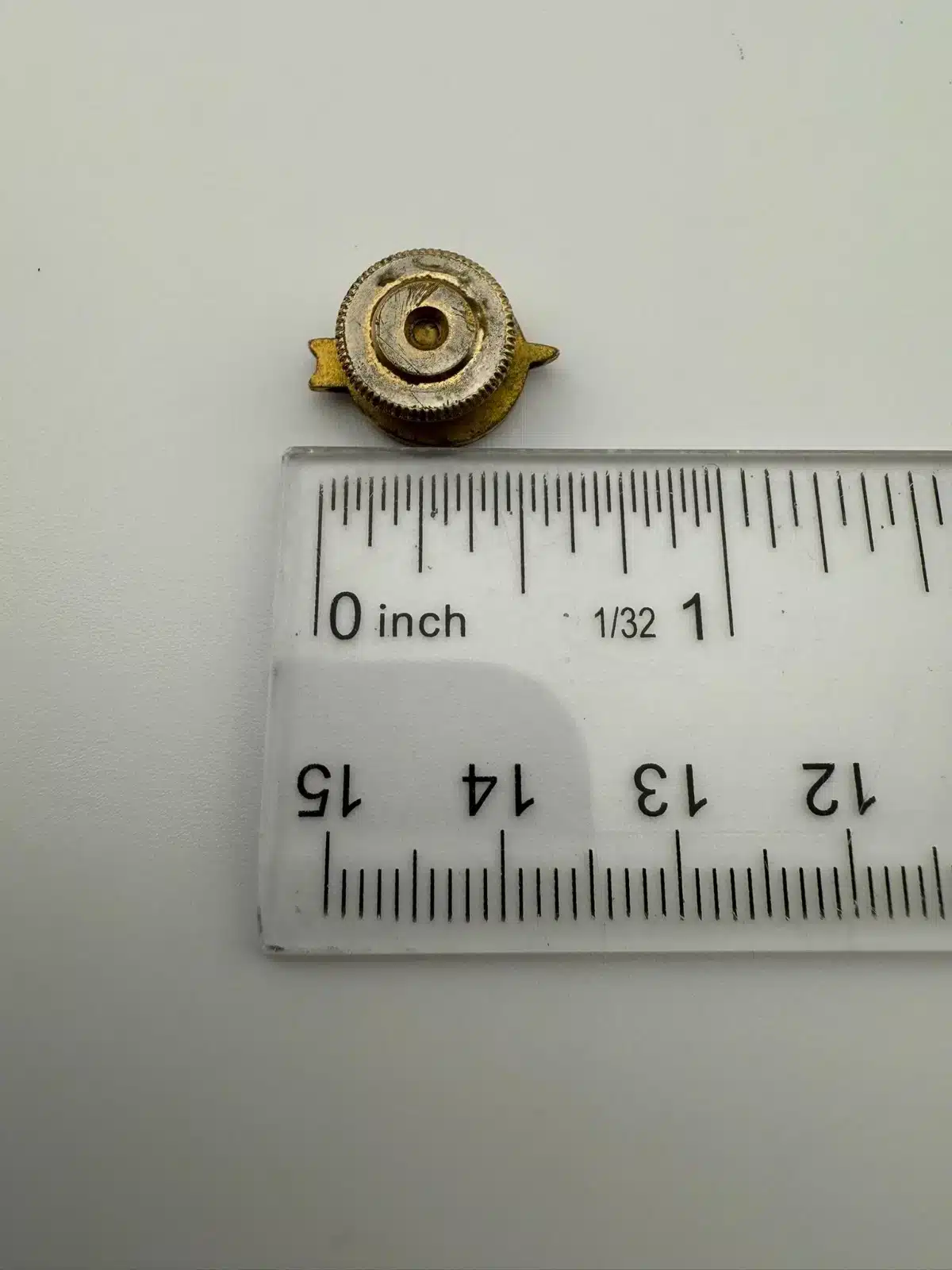 Used with marks including wear, dings, scratches, chips, enamel issues, etc. Screwback is a little tight but functional. Please see all photos for exact condition of item and size.