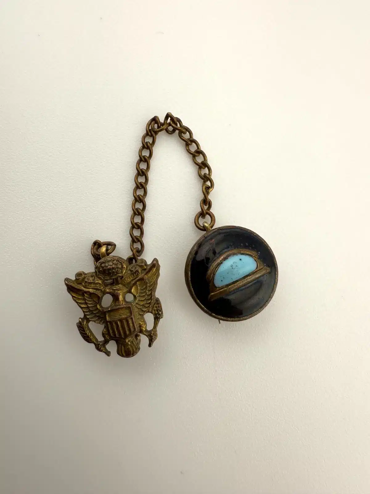 Vintage Amico US Army Eagle Insignia Pin On Chain with Additional Pin (damaged)