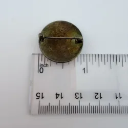 Pin measures approximately 1 inch in diameter.
