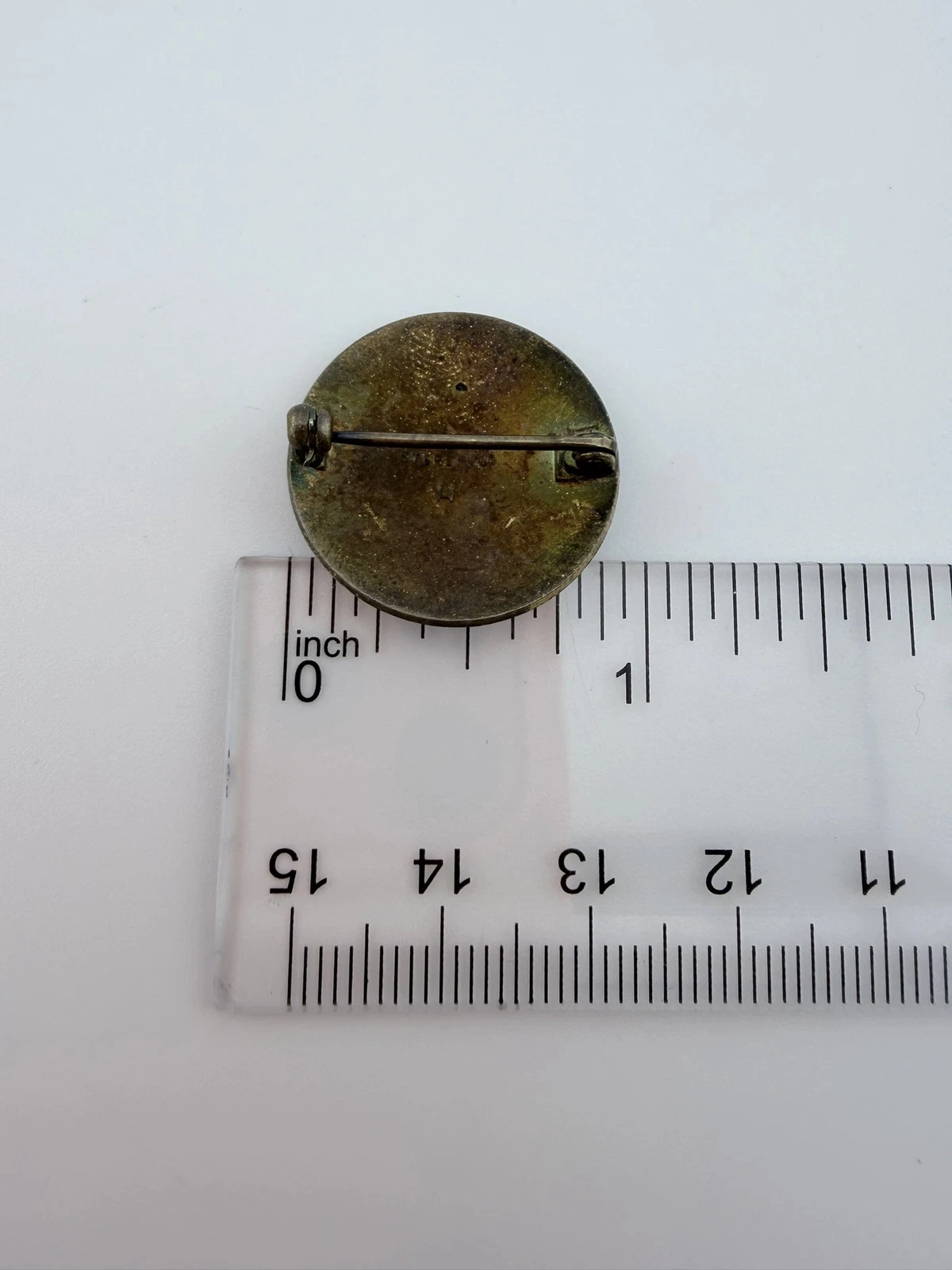 Pin measures approximately 1 inch in diameter.