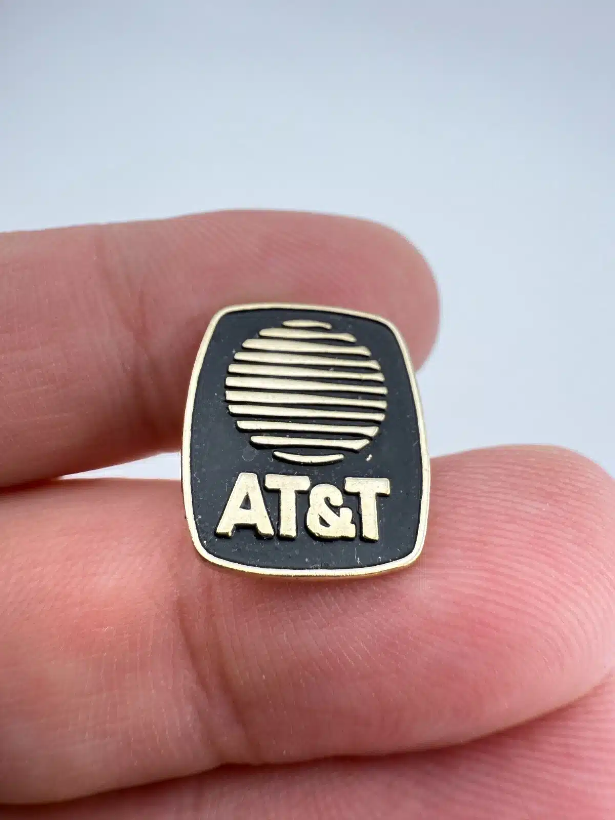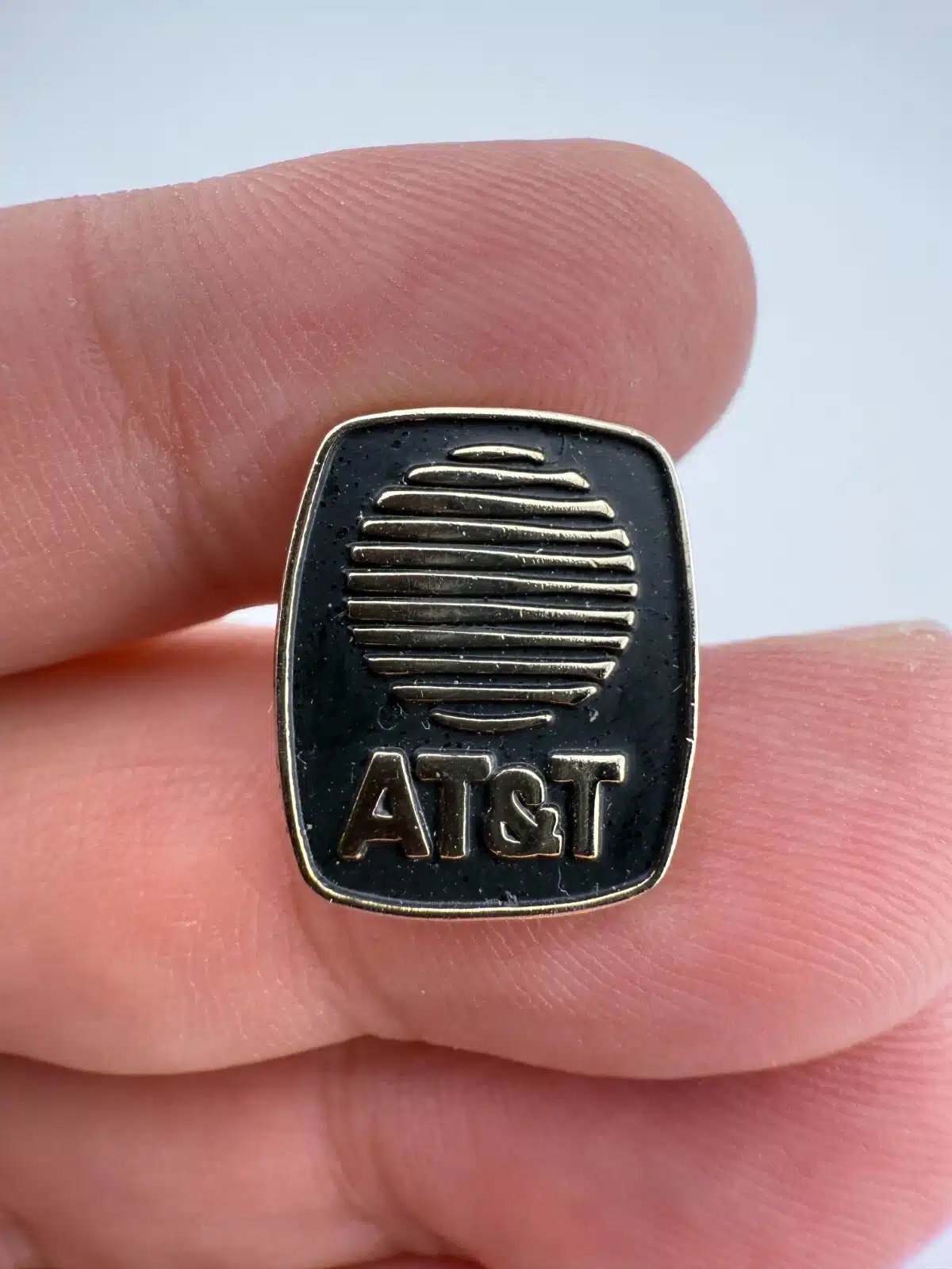 Vintage AT&T Lapel Pin – Black & Silver Globe Logo – 1/1/84 on back