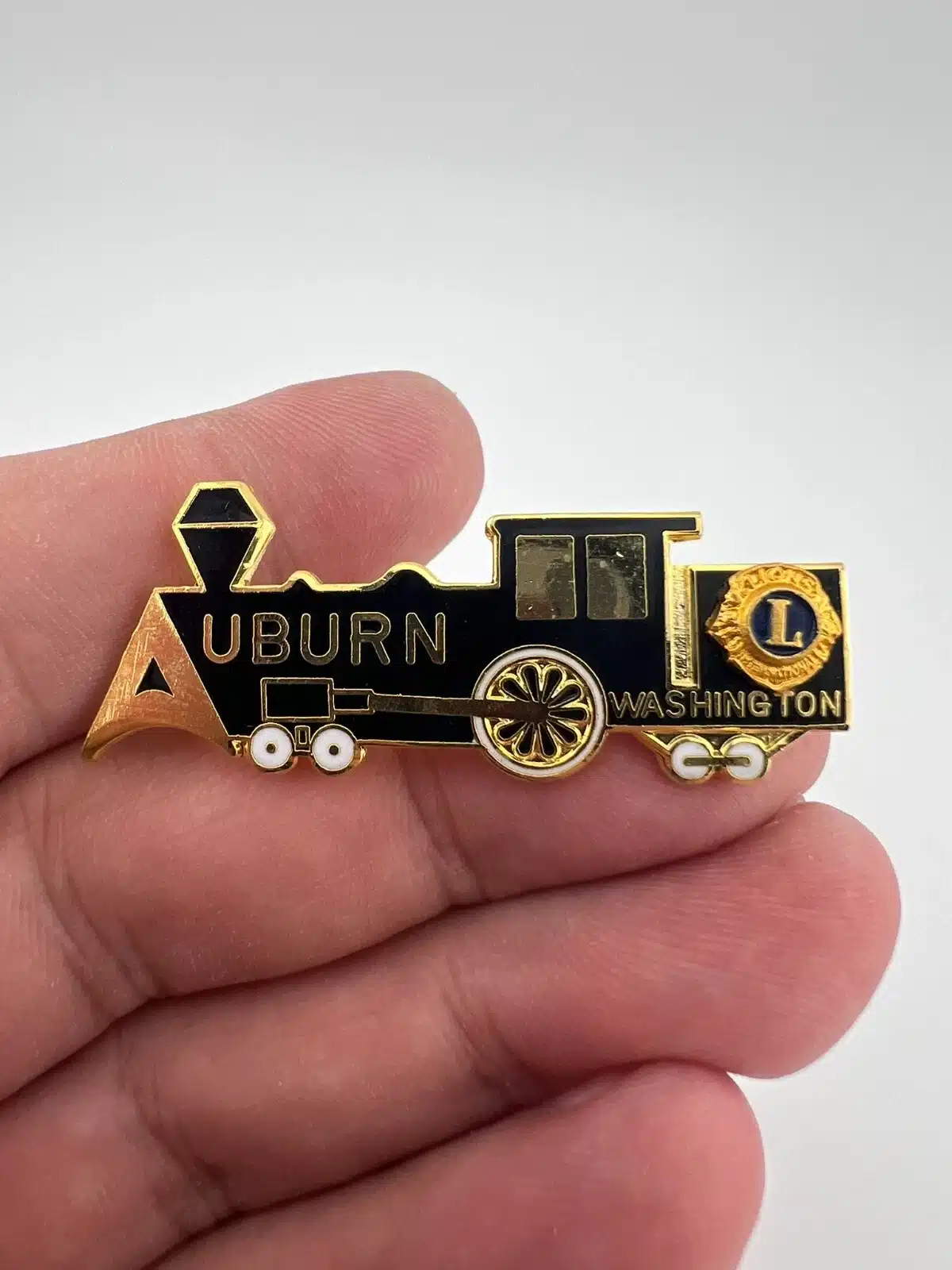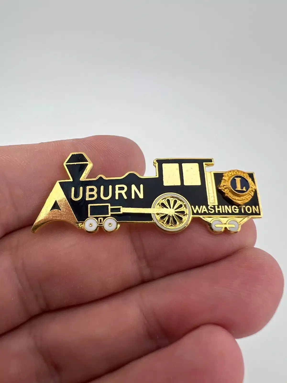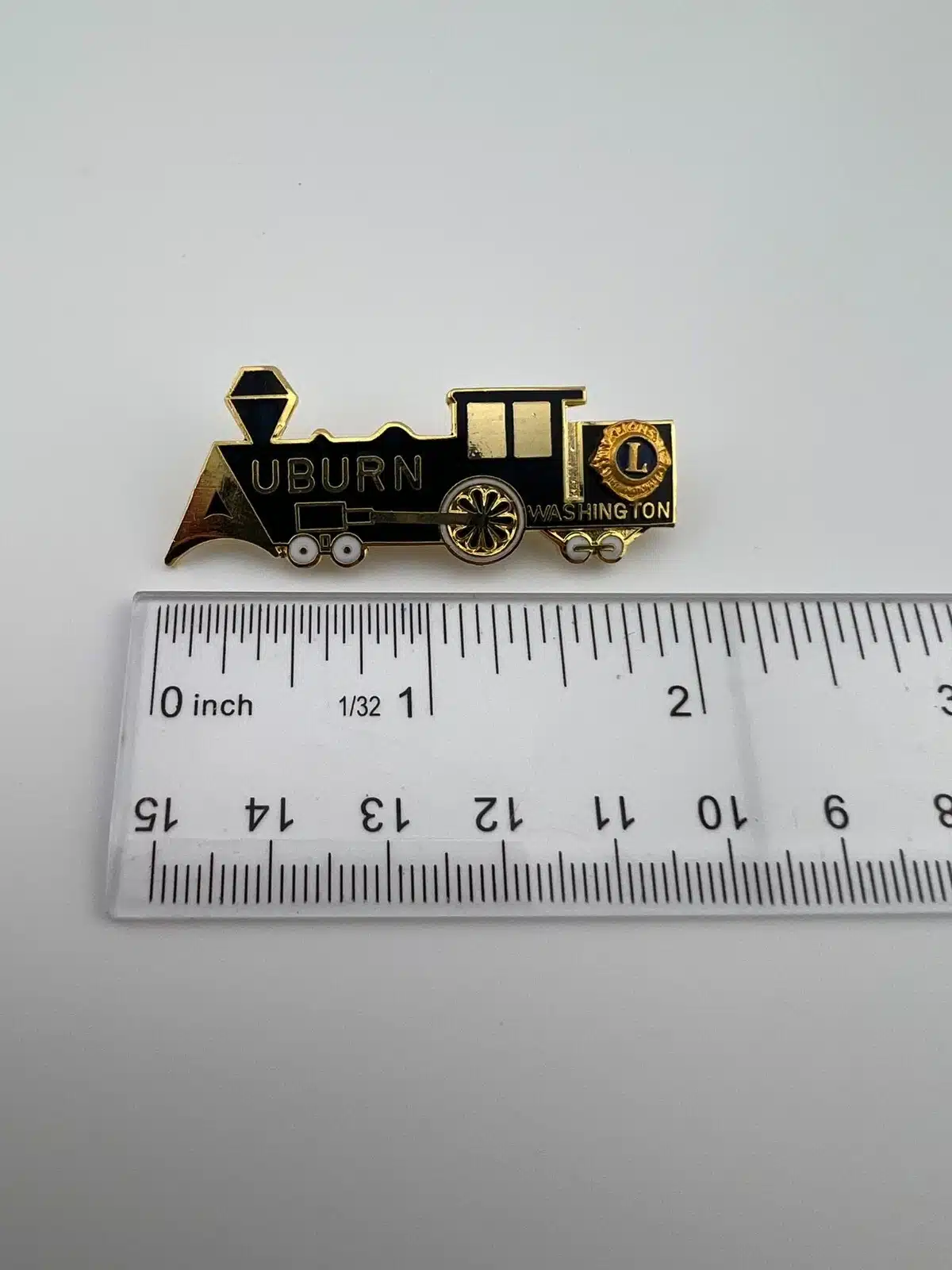 Vintage Auburn Washington Lions Club Train Lapel Hat Pin Brooch *curved pin*
