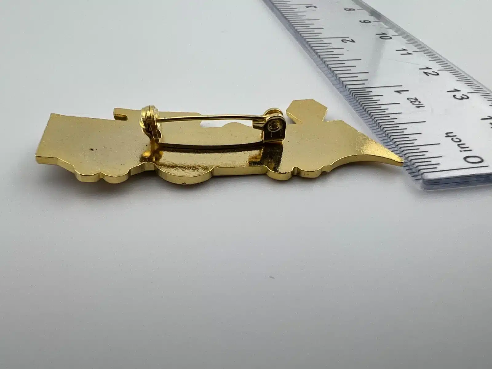 Pin is curved, not flat – see last photo. Used with marks. Please see all photos for exact condition of item and size.