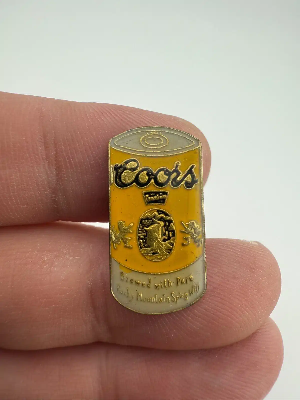 Vintage Coors can hat pin showing off the classic can style from earlier decades. Cool bit of beer nostalgia for anyone who grew up around these iconic cans.