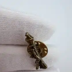 Novelty pins like this were commonly produced as humorous character pieces, often depicting animals in human-like poses and situations.