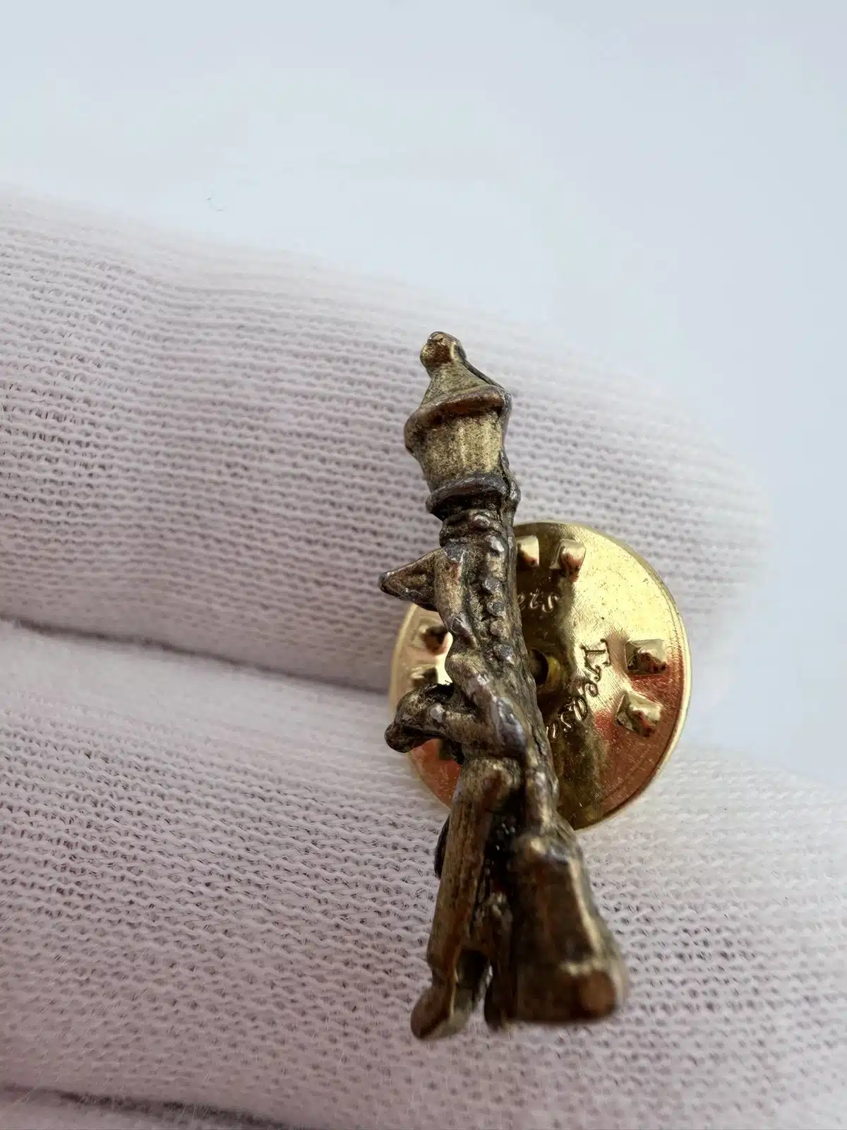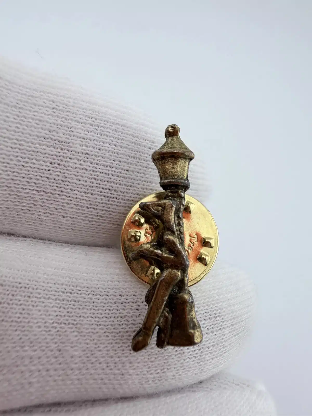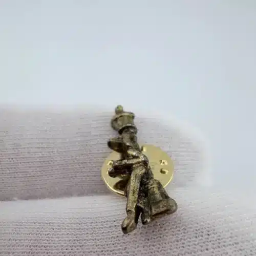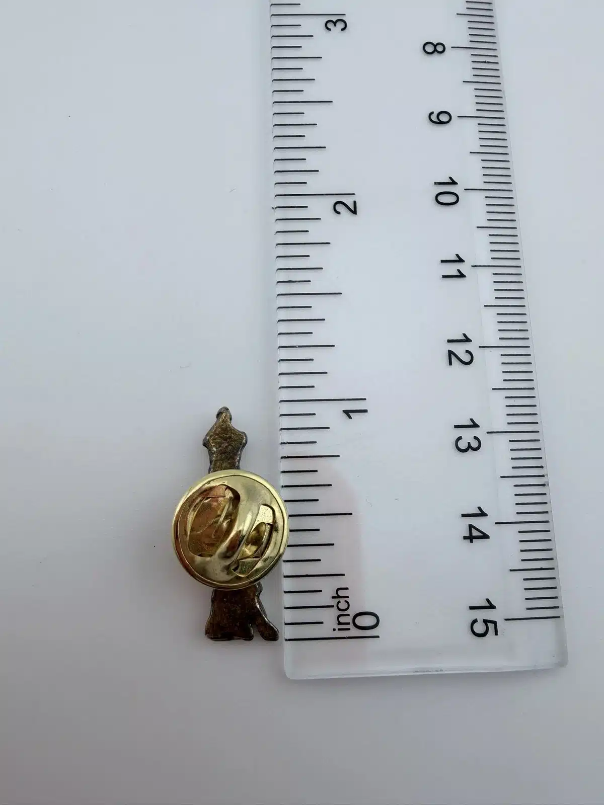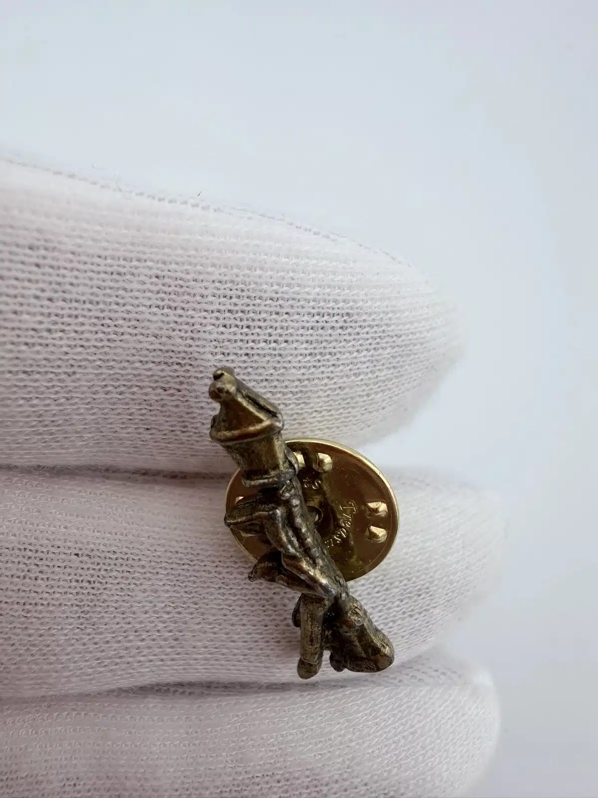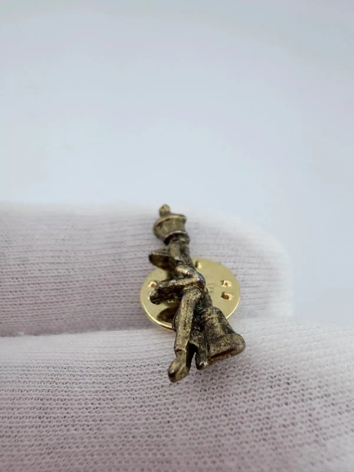 Novelty pins like this were commonly produced as humorous character pieces, often depicting animals in human-like poses and situations.