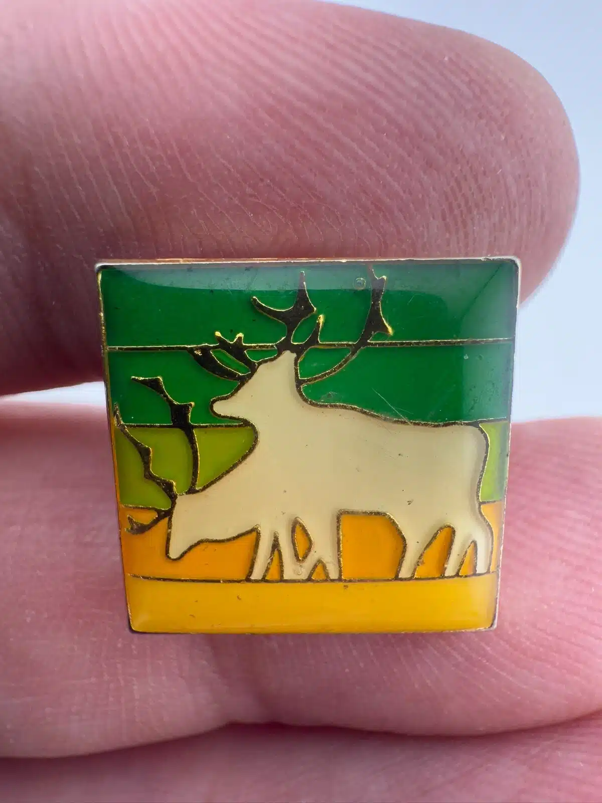 Vintage Elk Deer or Moose Multi-color Lapel Hat Pin