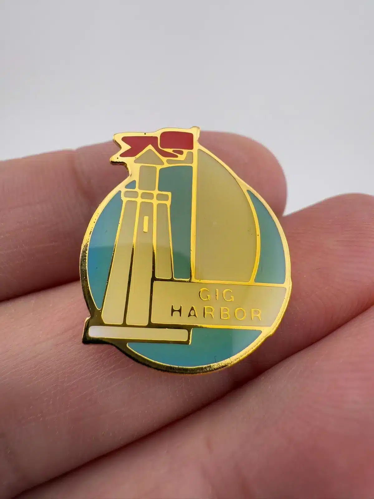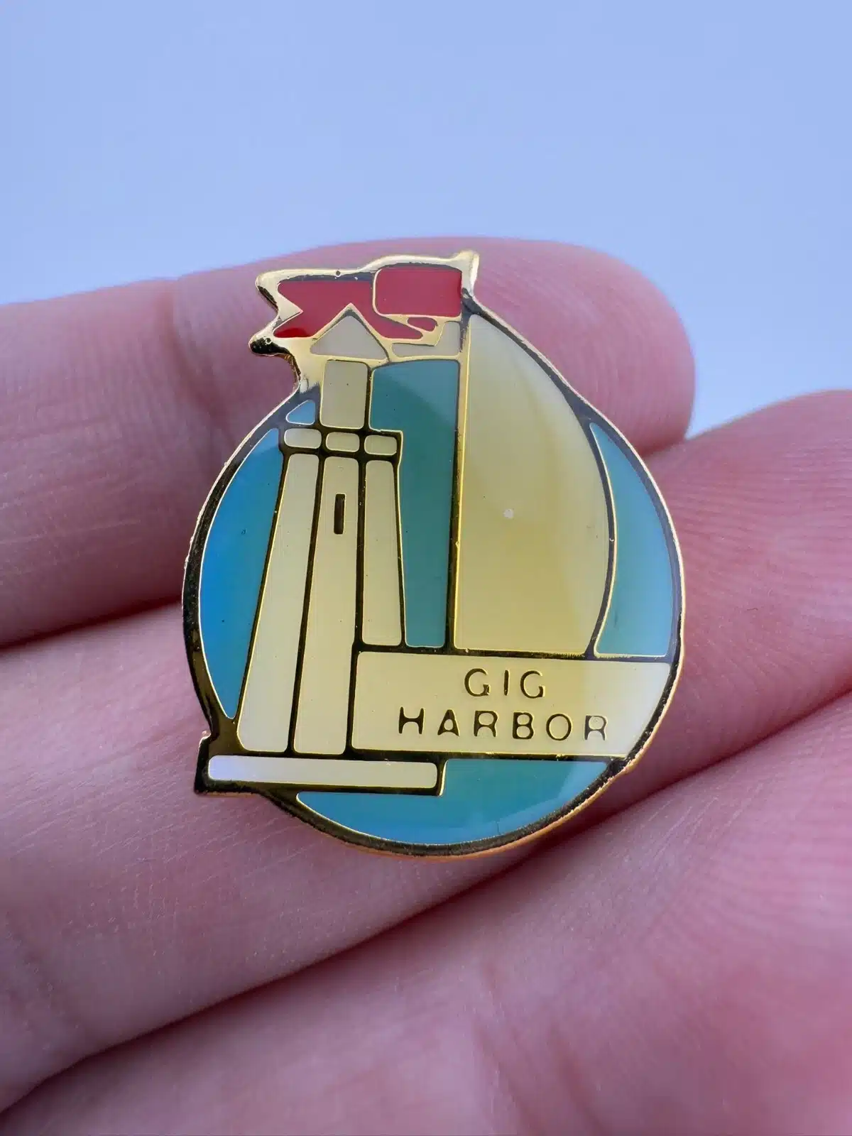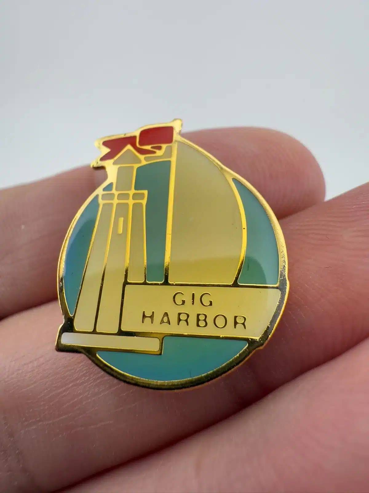 Vintage GIG HARBOR Puget Sound Washington Pin with Lighthouse and sailboat