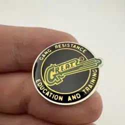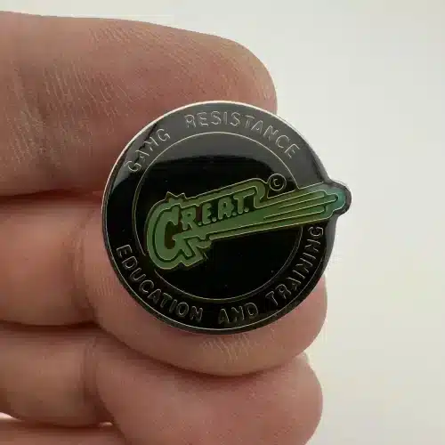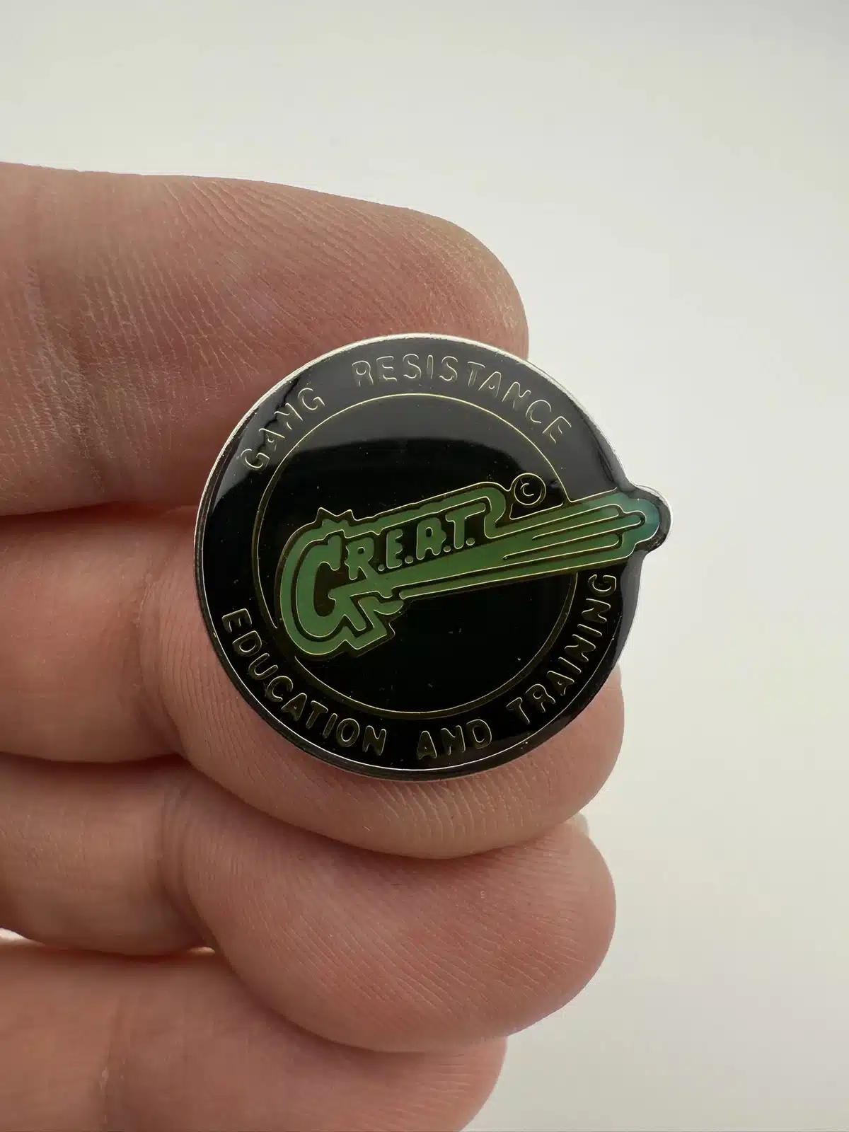 This vintage pin features the acronym ‘GREAT’ prominently, representing the Gang Resistance Education and Training program initiated by the Bureau of Alcohol, Tobacco, Firearms and Explosives in the 1990s