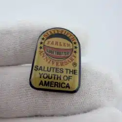 This vintage pin commemorates the 65th anniversary of the Harlem Globetrotters, showcasing a vibrant red, white, and blue basketball at the top. The design pays tribute to the organization’s enduring legacy and its influence on youth culture in America. The Harlem Globetrotters were founded in 1926 which makes this pin from 1991.