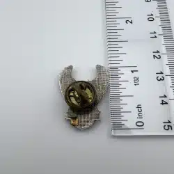 Enamel coating isn’t perfect on this pin. It is missing from the top of the eagle’s wings and there is some excess on the back of the pin. Good condition however.