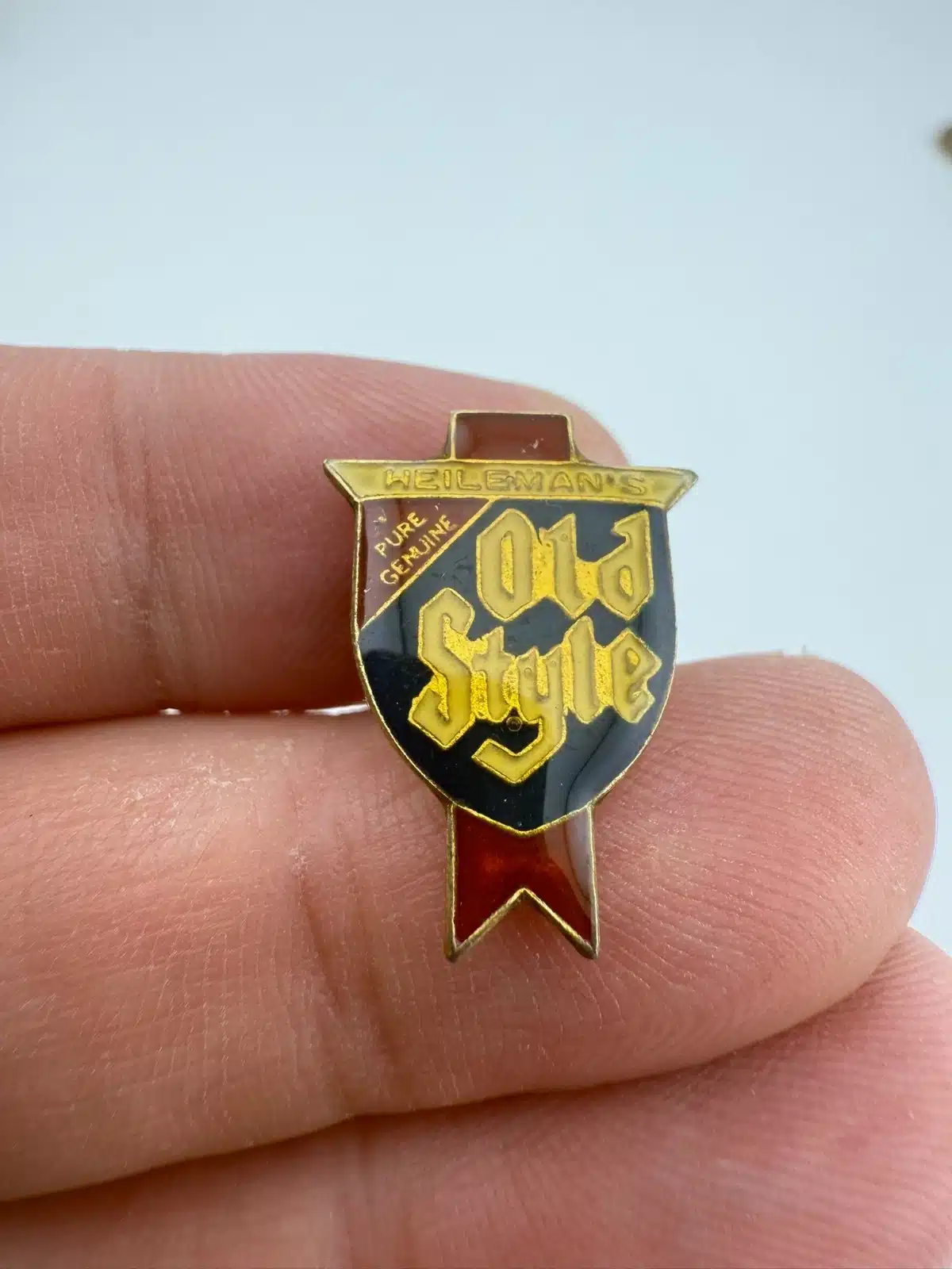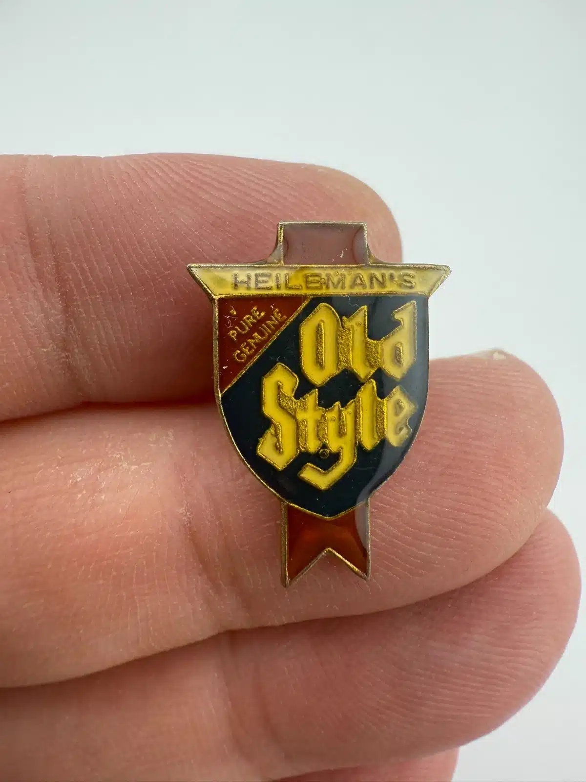 Vintage Heileman’s Old Style beer pin, red ribbon version. Cool bit of Midwest beer nostalgia from a brand that’s been around forever.