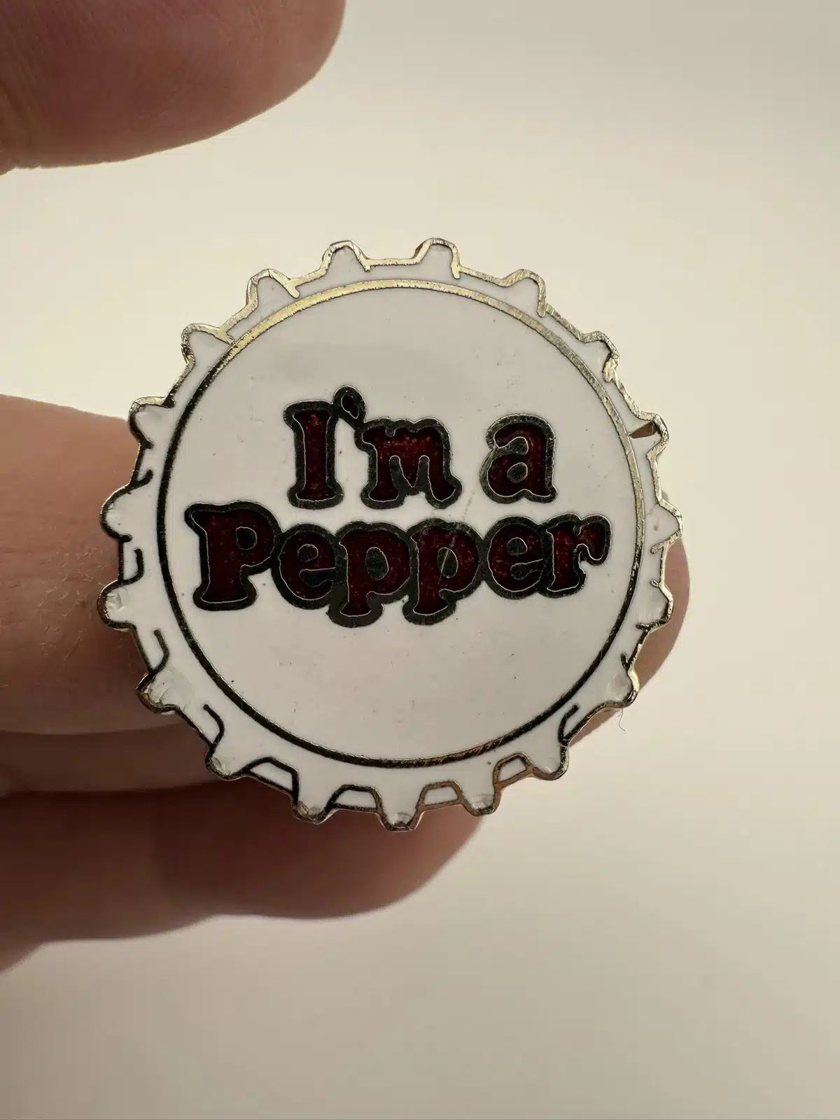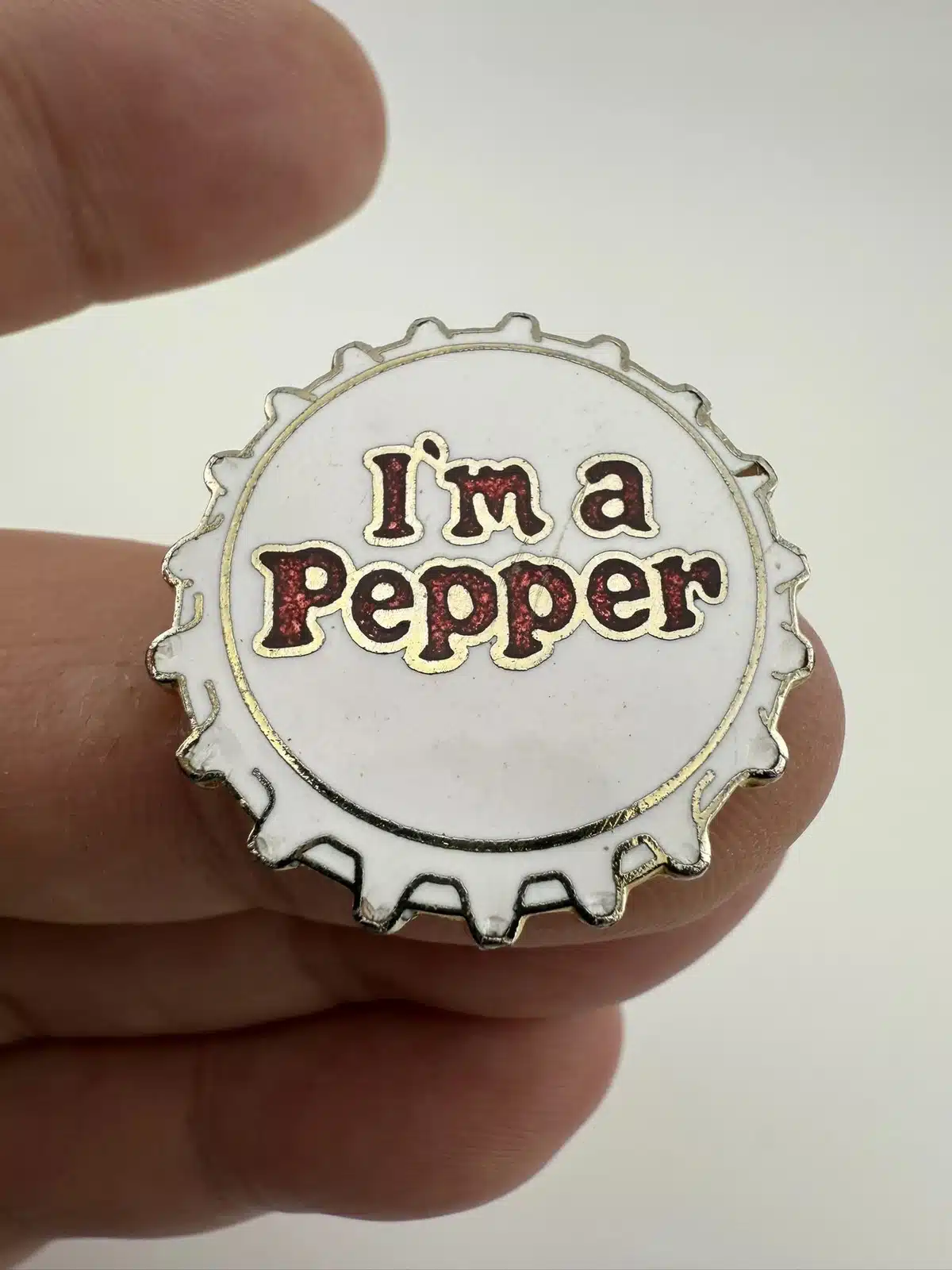 Vintage I’m A Pepper Bottle Cap Pin Brooch Dr. Pepper – Damage