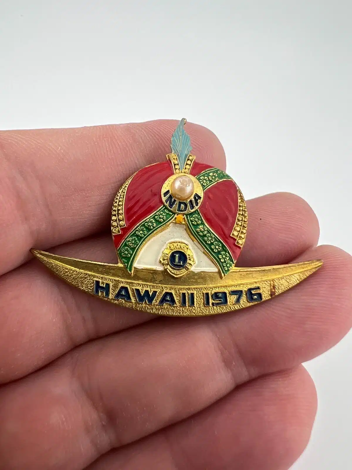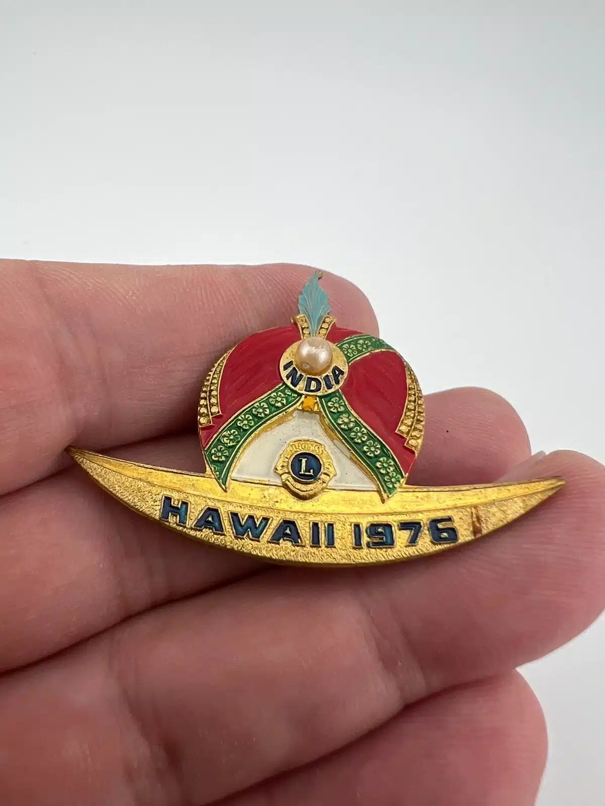 Vintage International Lions Club India Turban Hawaii 1976 Pin Brooch – Used