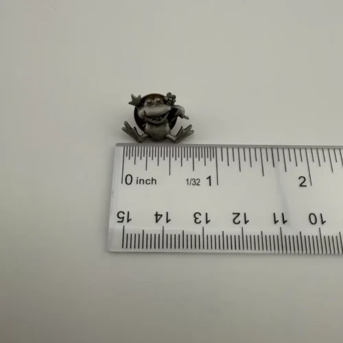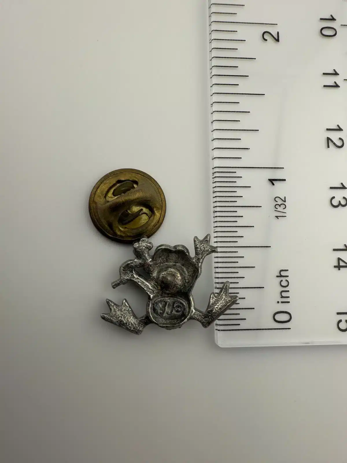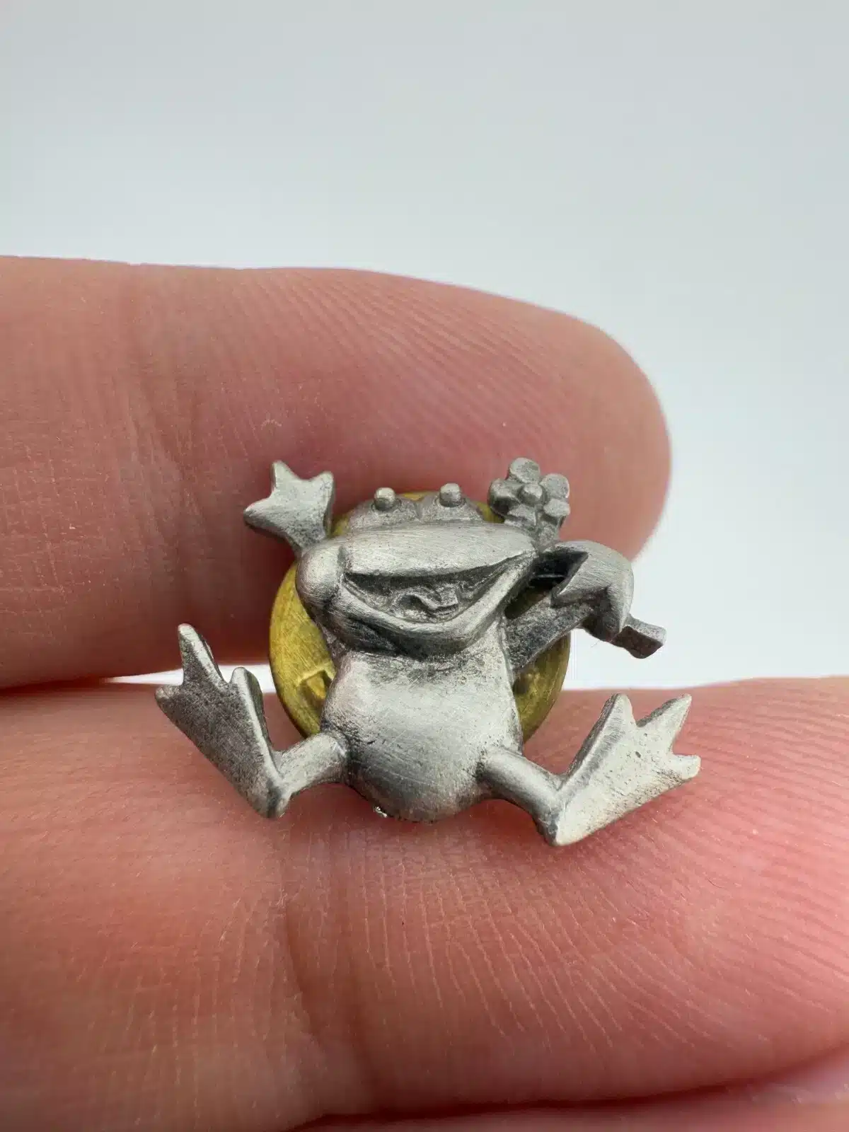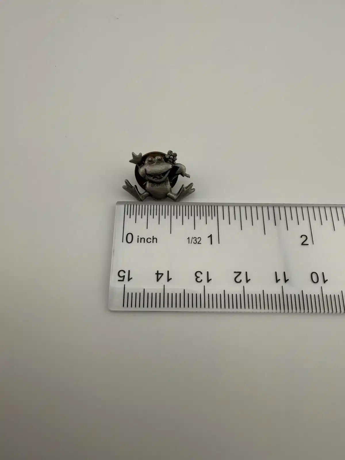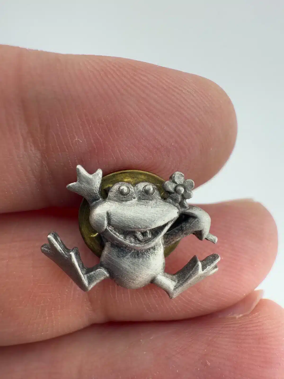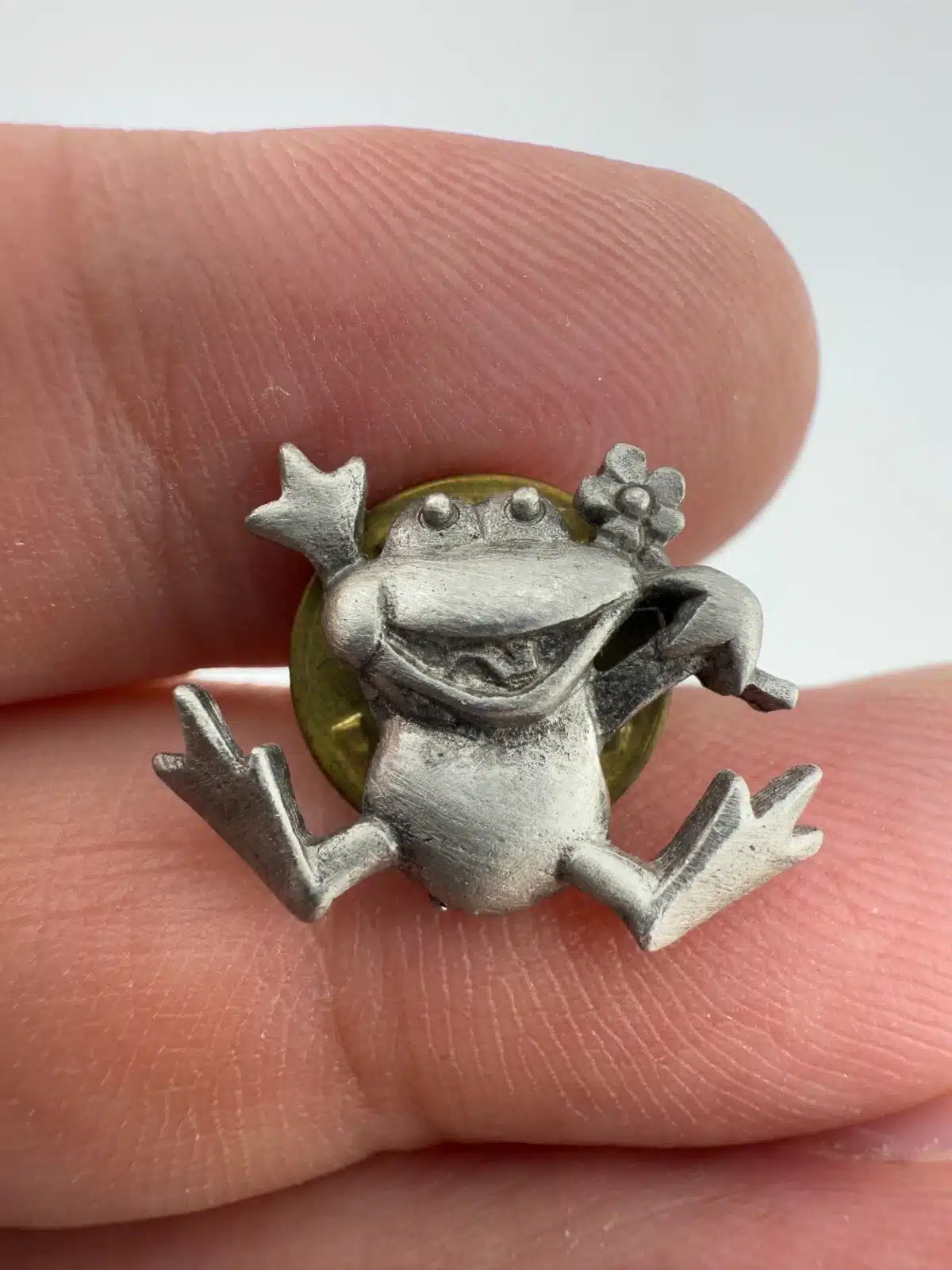 Vintage JJ Happy Frog With Flower Lapel Hat Pin – Silver Tone – Small